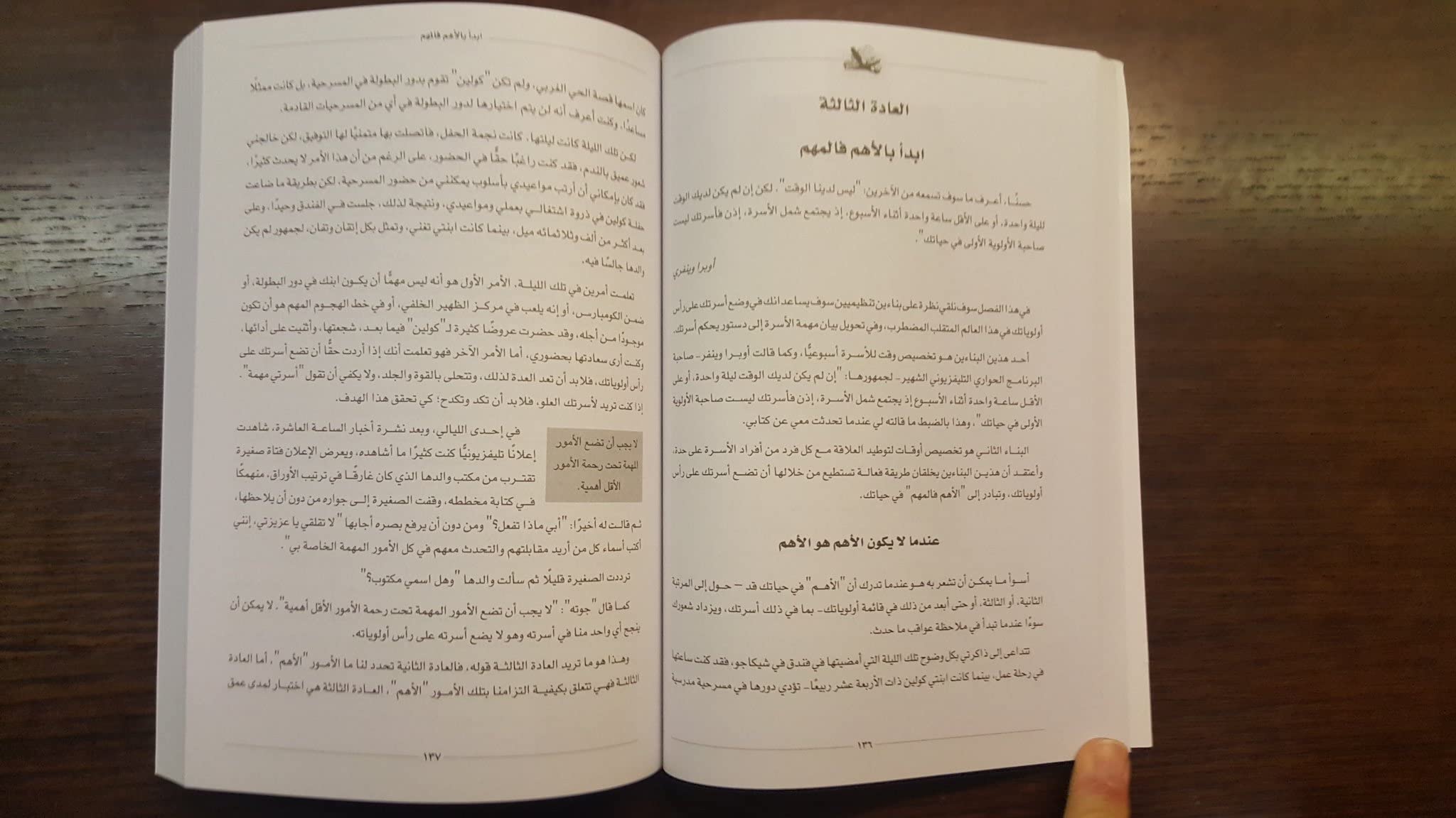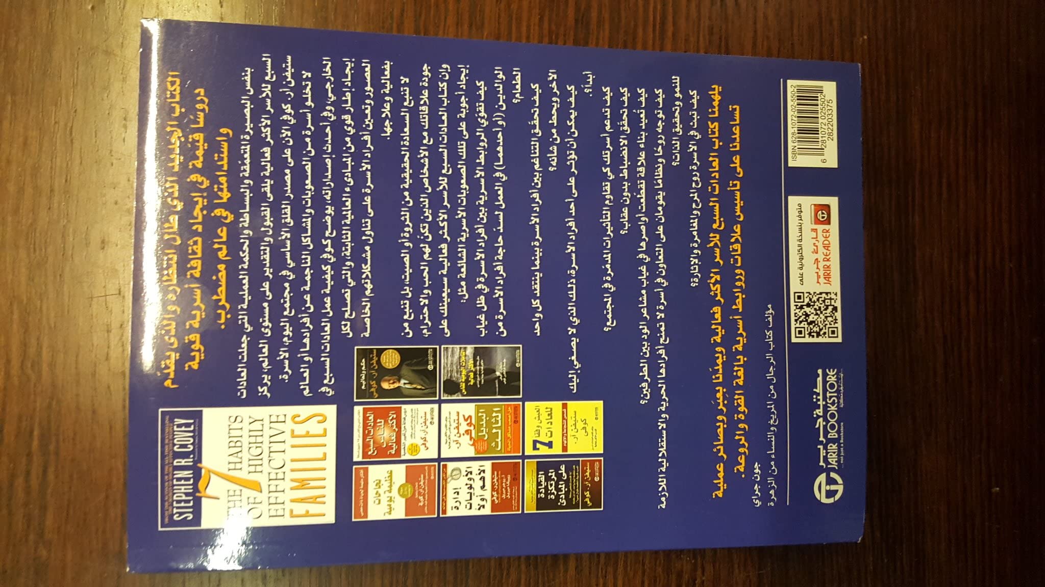Translated to Arabic, 'The 7 Habits of Highly Effective Families'. Stephen Covey shows you how to apply the acclaimed 7 Habits to the unique circumstances of your family. You'll learn to establish a proven and successful principle-centered framework to build strong family relationships and develop a common language so family members better understand each other.