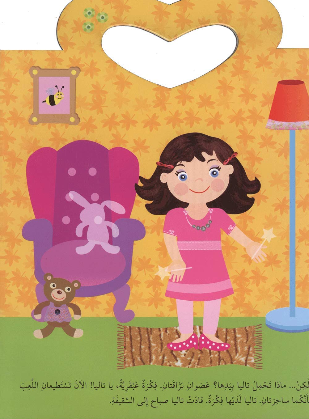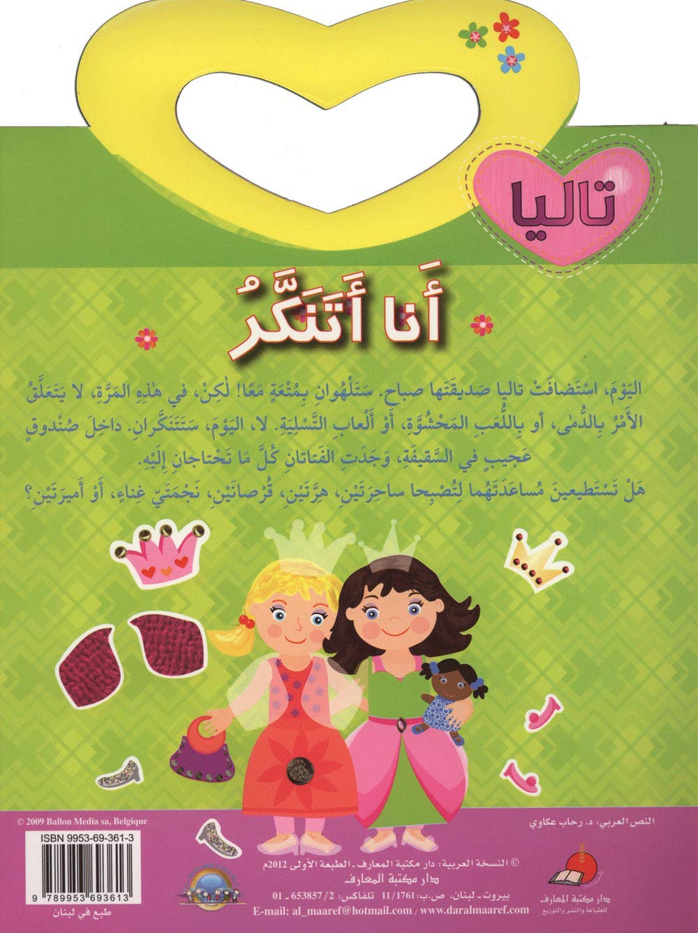 اليوم، استضافتْ تاليا صديقتها صباح. ستلهُوان بمتعةٍ معاً! لكن، في هذه المرة، لا يتعلق الأمر بالدب، أو باللعبِ المحشوة، أو ألعاب التسلية. لا، اليوم، ستتنكَّران.داخل صندوق عجيبٍ في السقيفة، وجدت الفتاتان كل ما تحتاجان إليه.هل تستطيعين مساعدتهما لتصبحا ساحرتَيْن، هِرَّتيْنِ، قُرْصانتَيْن، نجْمَتَيْ غِناءٍ، أو أميرتَيْن؟