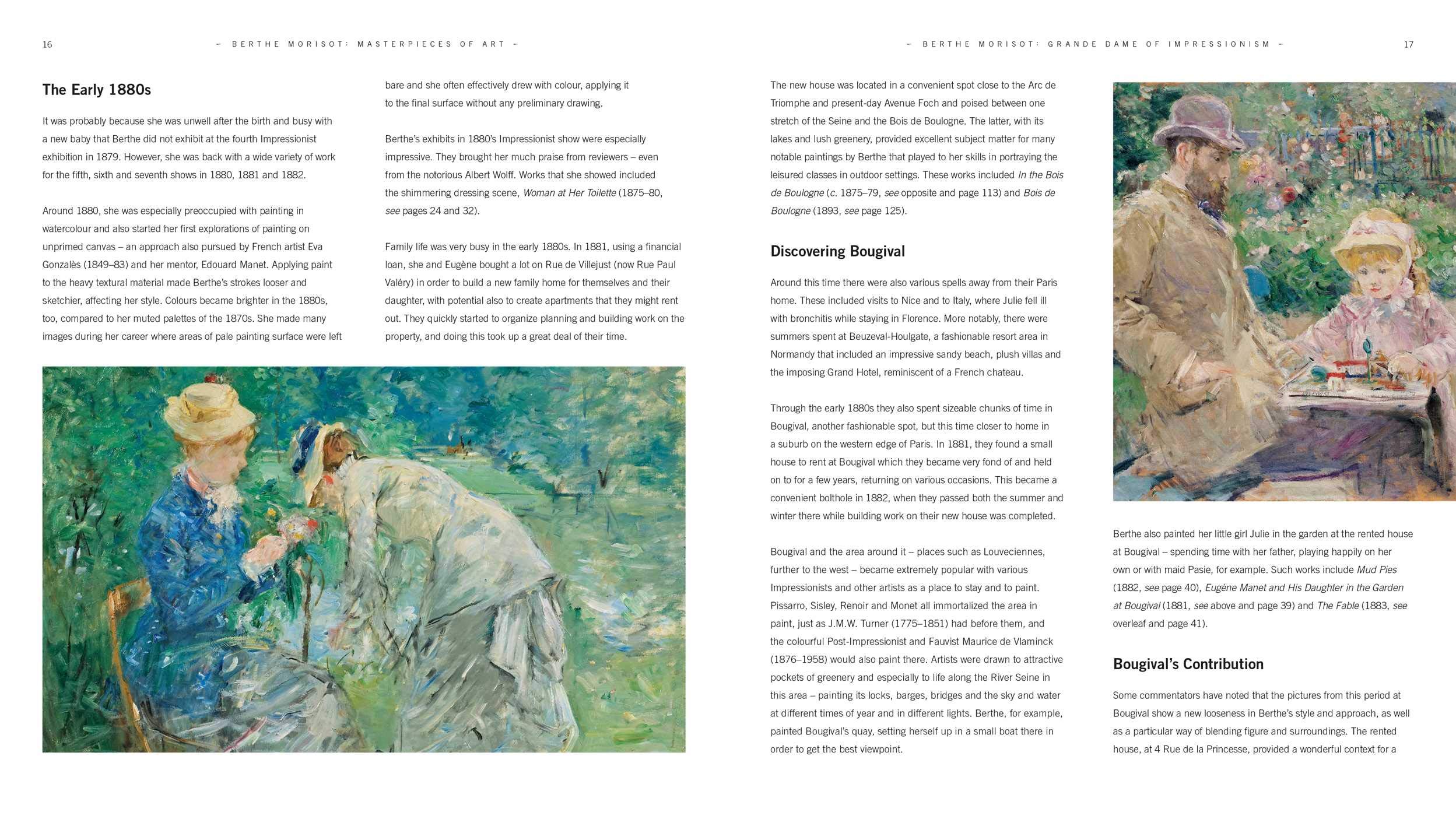Regarded by her fellow impressionists as a ‘virtuoso colourist’, Berthe Morisot (1841–95) strove to be considered an equal among her male peers – an uphill struggle at a time when women were generally forbidden from taking formal artistic training. Nevertheless, she succeeded in forging a career, gaining respect, becoming a key player and creating a body of work that has stood the test of time. Her impressionism vibrates with light and spontaneity and yet possesses a density of form through the deft use of colour. Inevitably she painted what she experienced: scenes of intimate domestic and family life, gardens, flowers, landscapes – representing the real, unfiltered day-to-day life of 19th-century women – from the tender depiction of maternal love in The Cradle to the Far-Eastern inspired Julie with her Greyhound Laërte. This gorgeous book introduces the reader to the background, life and work of the artist, followed by a curated selection of her best work in exquisite full-page reproductions.