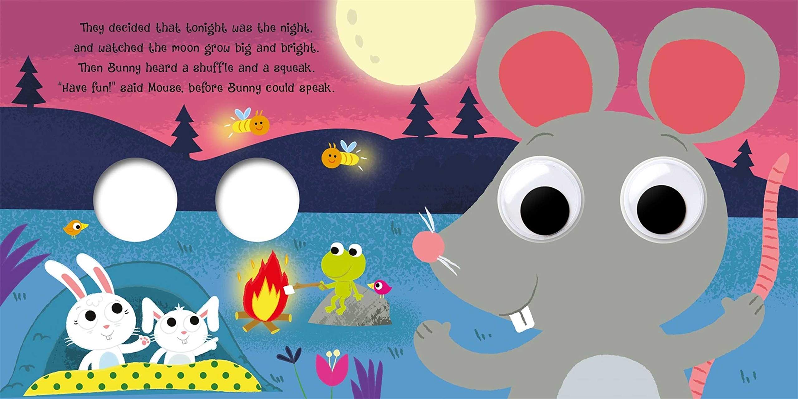 Little Bunny always goes to bed at the same time, but one day he wonders what happens after everyone goes to sleep? Join him on a nighttime adventure in this adorable spring tale. For extra fun, shake the book to watch the wobbly eyes go!