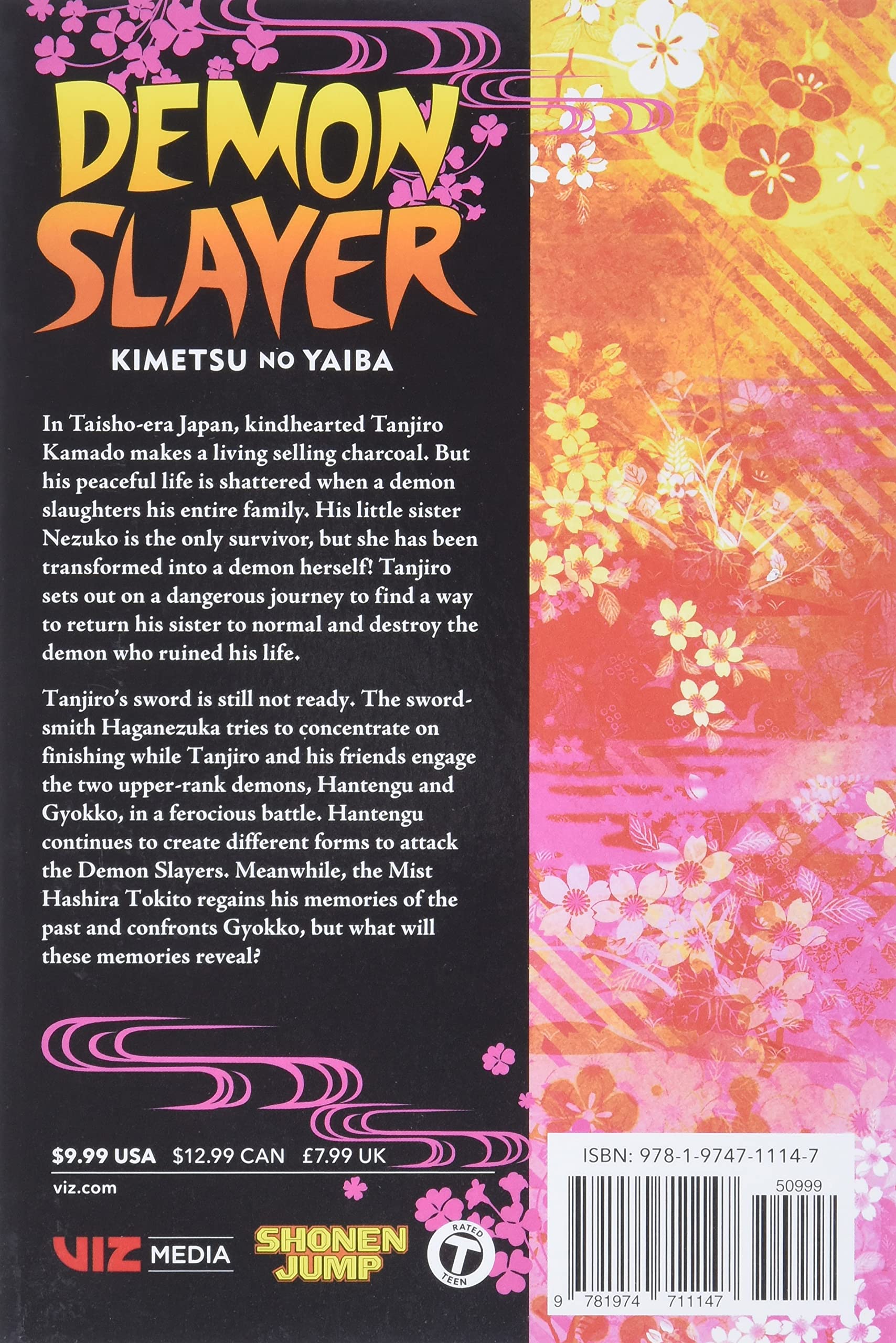 Tanjiro sets out on the path of the Demon Slayer to save his sister and avenge his family!In Taisho-era Japan, kindhearted Tanjiro Kamado makes a living selling charcoal. But his peaceful life is shattered when a demon slaughters his entire family. His little sister Nezuko is the only survivor, but she has been transformed into a demon herself! Tanjiro sets out on a dangerous journey to find a way to return his sister to normal and destroy the demon who ruined his life.Tanjiro's sword is still not ready. The swordsmith Haganezuka tries to concentrate on finishing while Tanjiro and his friends engage the two upper-rank demons, Hantengu and Gyokko, in a ferocious battle. Hantengu continues to create different forms to attack the Demon Slayers. Meanwhile, the Mist Hashira Tokito regains his memories of the past and confronts Gyokko, but what will these memories reveal?
