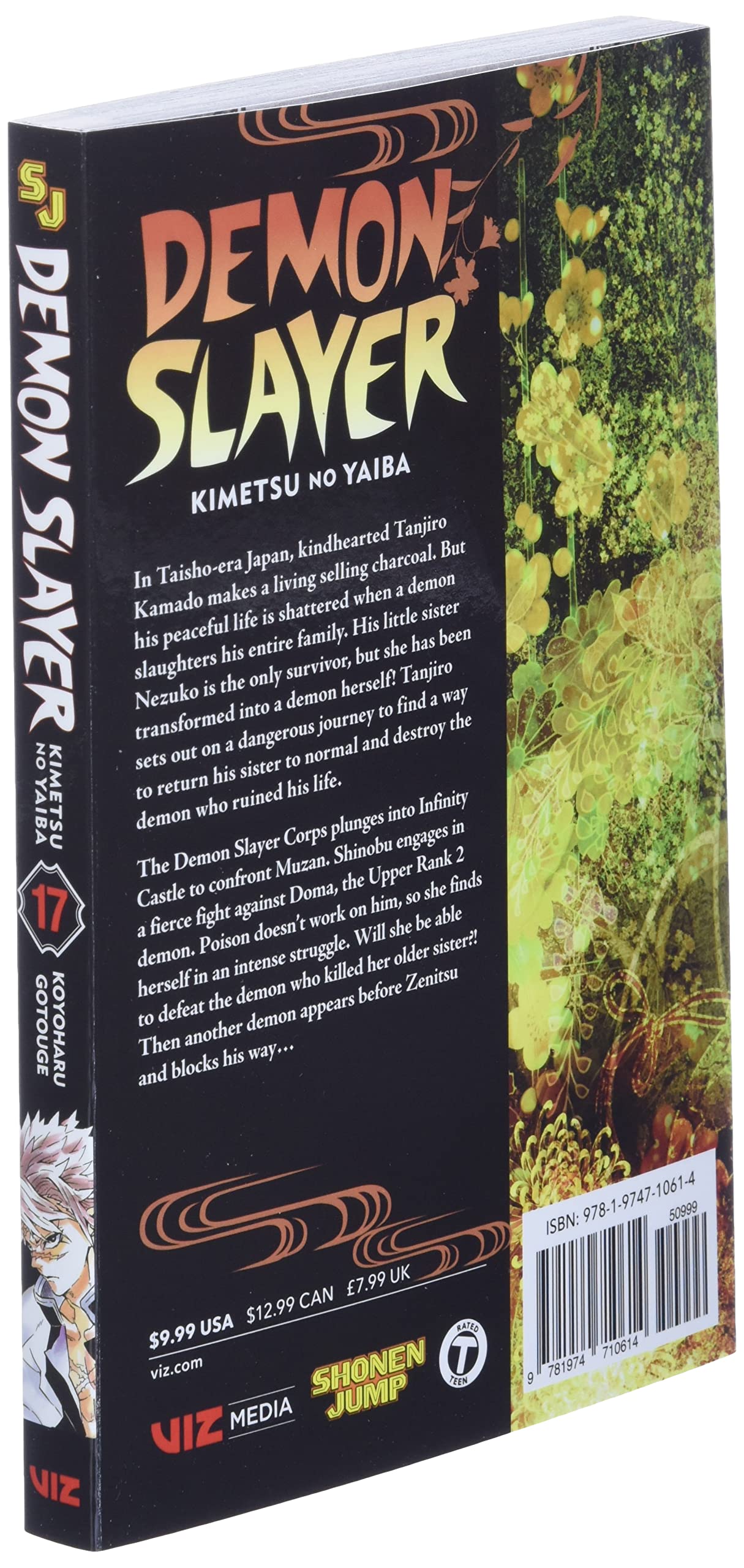 Tanjiro sets out on the path of the Demon Slayer to save his sister and avenge his family!In Taisho-era Japan, kindhearted Tanjiro Kamado makes a living selling charcoal. But his peaceful life is shattered when a demon slaughters his entire family. His little sister Nezuko is the only survivor, but she has been transformed into a demon herself! Tanjiro sets out on a dangerous journey to find a way to return his sister to normal and destroy the demon who ruined his life.The Demon Slayer Corps plunges into Infinity Castle to confront Muzan. Shinobu engages in a fierce fight against Doma, the Upper Rank 2 demon. Poison doesn’t work on him, so she finds herself in an intense struggle. Will she be able to defeat the demon who killed her older sister?! Then another demon appears before Zenitsu and blocks his way…