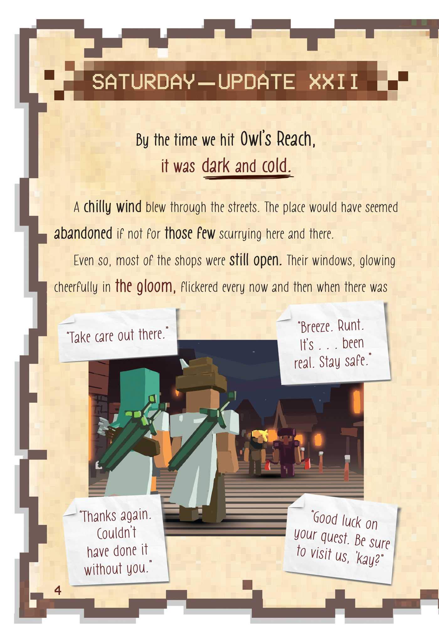 Book 6 of the international best-selling 8-Bit Warrior series that takes readers inside the journal of Runt, a young Minecraft villager who dares to dream of becoming a Minecraft warrior!THESE ARE THE REAL BOOKS BY CUBE KID! DIARY OF AN 8-BIT WARRIOR (BOOK 6) WAS ORIGINALLY PUBLISHED AS WIMPY VILLAGER KINDLES 15 & 16.In the sixth in this series of six unofficial Minecraft adventure books, everyone's favorite 12-year-old villager-turned-warrior is back this time to use his warrior training on a new quest. There’s no time to enjoy his newfound stardom.To save Villagetown, Runt embarks on a perilous quest far beyond the safety of the wall. Between bizarre towns, terrifying dungeons, and epic boss battles, Runt must summon the hero within and say “so long” to the noob!