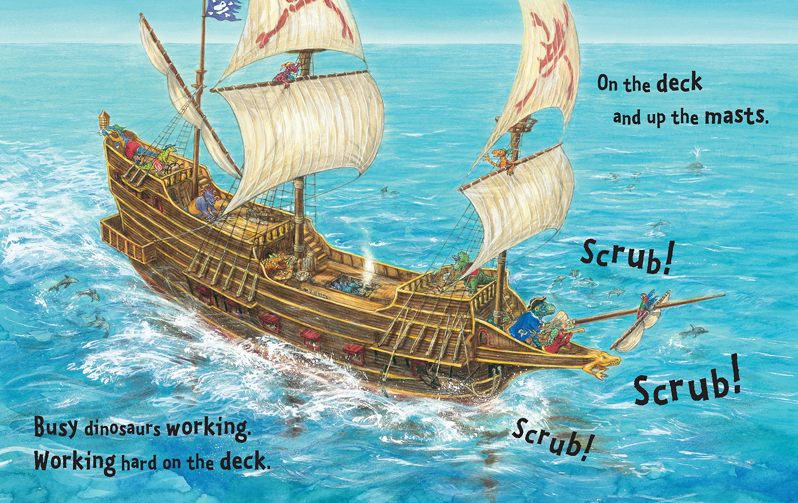 "Rousing dino adventure with enough tooth-to-claw fighting for an exciting climax." — Kirkus ReviewsOur intrepid team of dinosaurs is back, but this time they are pirates in search of buried treasure! Having navigated their way to a desert island and dug up their booty, they are just sailing away when they are ambushed by a fearsome band of marauding baddy-pirates! Will our goody-pirates save their gold, their ship, and their honor, or will the baddies win out?