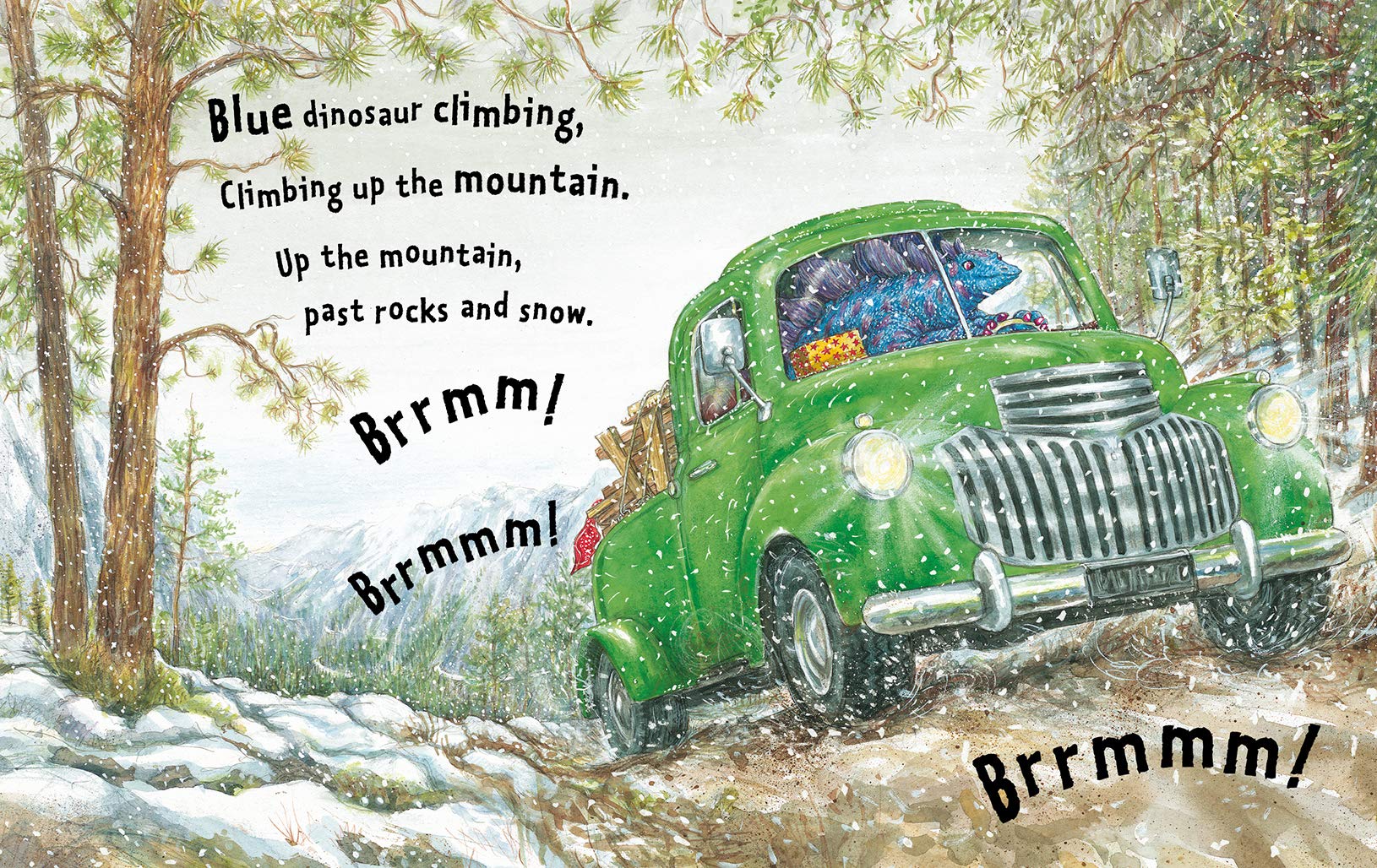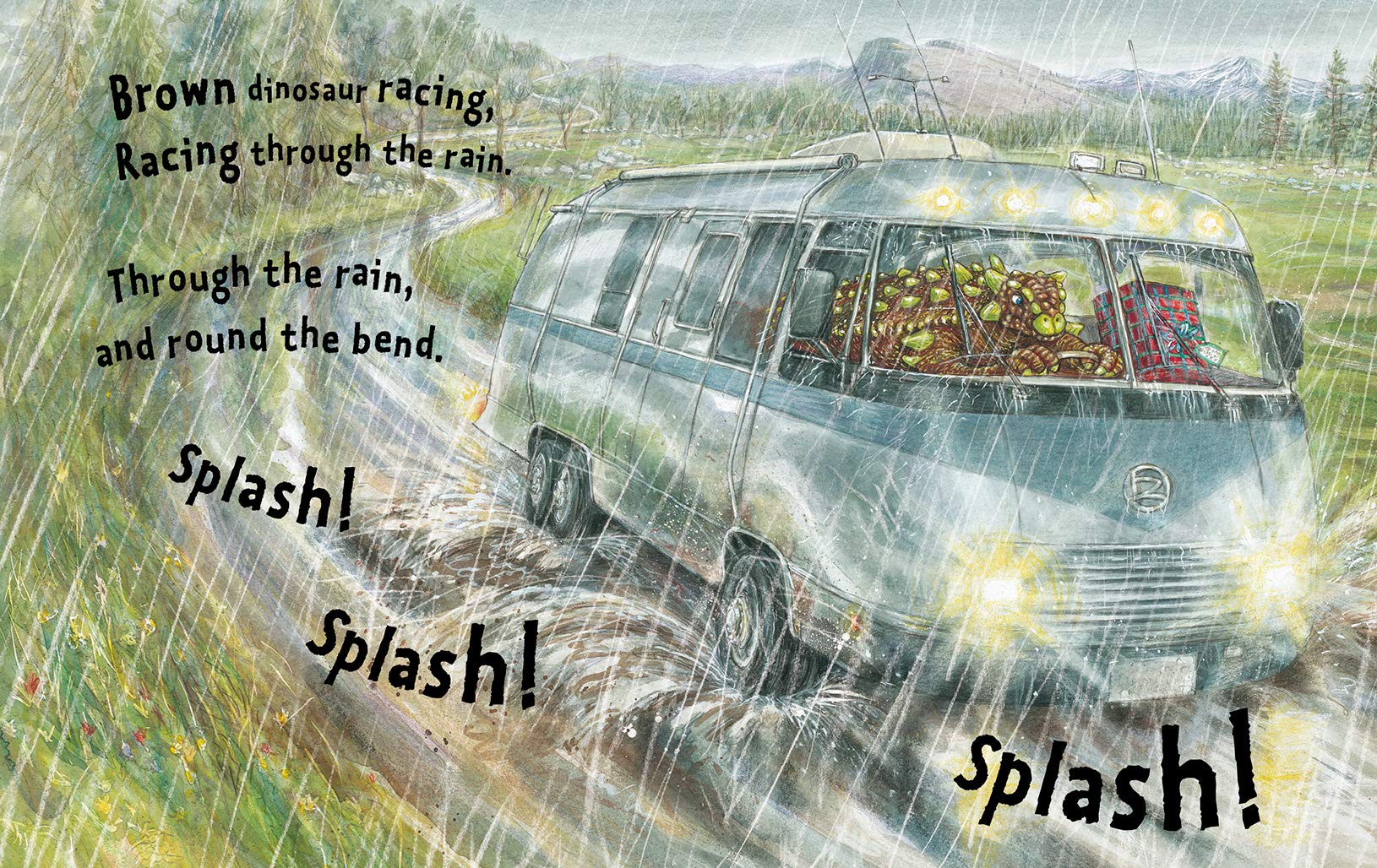 My whole family loves this story! The illustrations are very detailed and I didn't pick up on the clues till a few pages in as to what was happening. It is such a sweet story that makes you happy. It has an interesting and soothing rhythm - it doesn't rhyme but flows really well. I love how the hardcover version has the names of the dinosaurs and cars on the front & back inside covers (I am unsure if the paperback or board book versions have this).