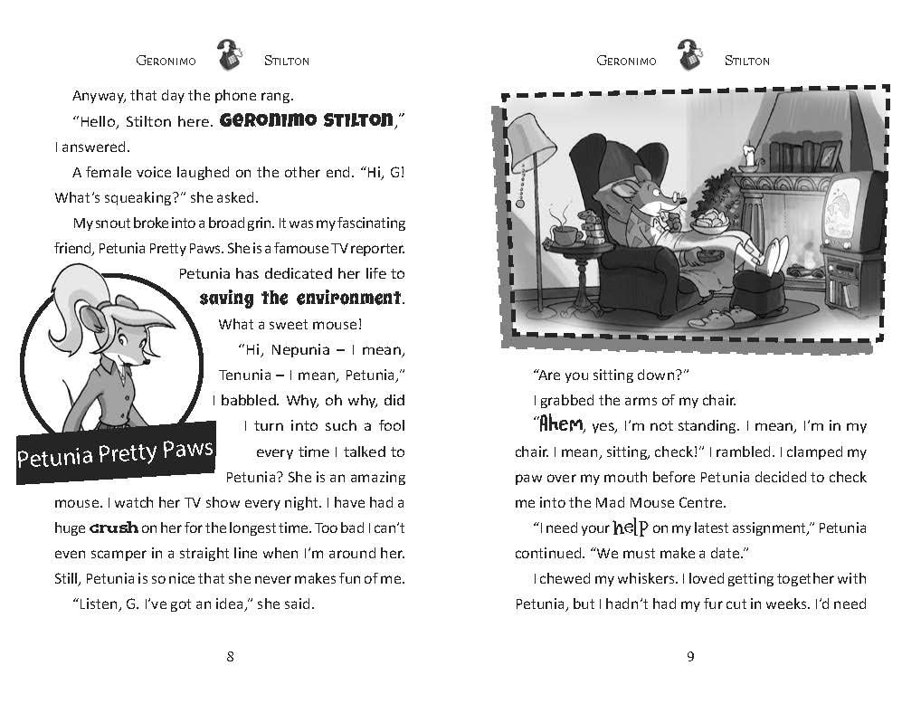 AS SEEN ON NETFLIX! 166+ million copies old worldwide About this book Petunia Pretty Paws has landed! Right in the middle of Geronimo Stilton’s busy life. Petunias offer of an Australian adventure couldn’t have come at a worse time, but apparently, no isn’t an option. Now one question remains: will Geronimo make it back to New Mouse City alive? About the series Meet Geronimo Stilton (The Indiana Jones of the Mouse world!) the famouse journalist, who although is of the quiet (and frightened way too easily) mousey kind, always finds himself in THE MOST ridiculously terrifying adventures one could only imagine, and all just to find the next hot story for his newspaper, The Rodent's Gazette! Filled with humour and engaging illustrations , this series perfect for 5 to 8 year olds.