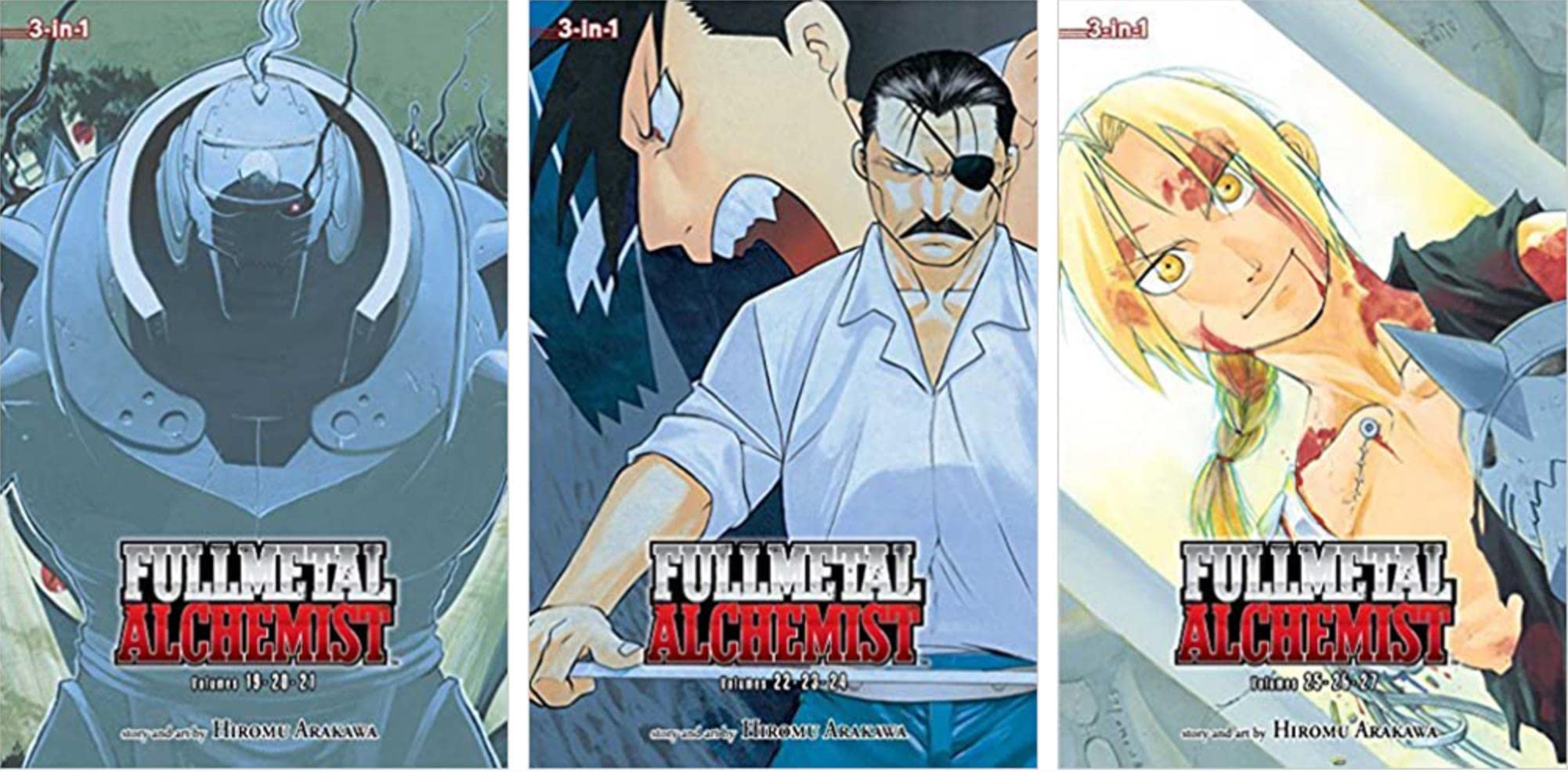 Bargain omnibus editions of one of the best-selling manga series of all time! This bundle contains complete 9-book of volumes 1-27 of Fullmetal Alchemist. In an alchemical ritual gone wrong, Edward Elric lost his arm and his leg, and his brother Alphonse became nothing but a soul in a suit of armor. Equipped with mechanical ""auto-mail"" limbs, Edward becomes a state alchemist, seeking the one thing that can restore his and his brother's bodies...the legendary Philosopher's Stone. Alchemy: the mystical power to alter the natural world, somewhere between magic, art and science. When two brothers, Edward and Alphonse Elric, dabbled in these powers to grant their dearest wish, one of them lost an arm and a leg...and the other became nothing but a soul locked into a body of living iron. Now they are agents of the government, slaves of the military-alchemical complex, using their unique powers to obey their orders...even to kill. But their powers aren't unique. The world crawls with evil alchemists. And in pursuit of the ultimate alchemical treasure, the Philosopher's Stone, their enemies are even more ruthless than they are...
