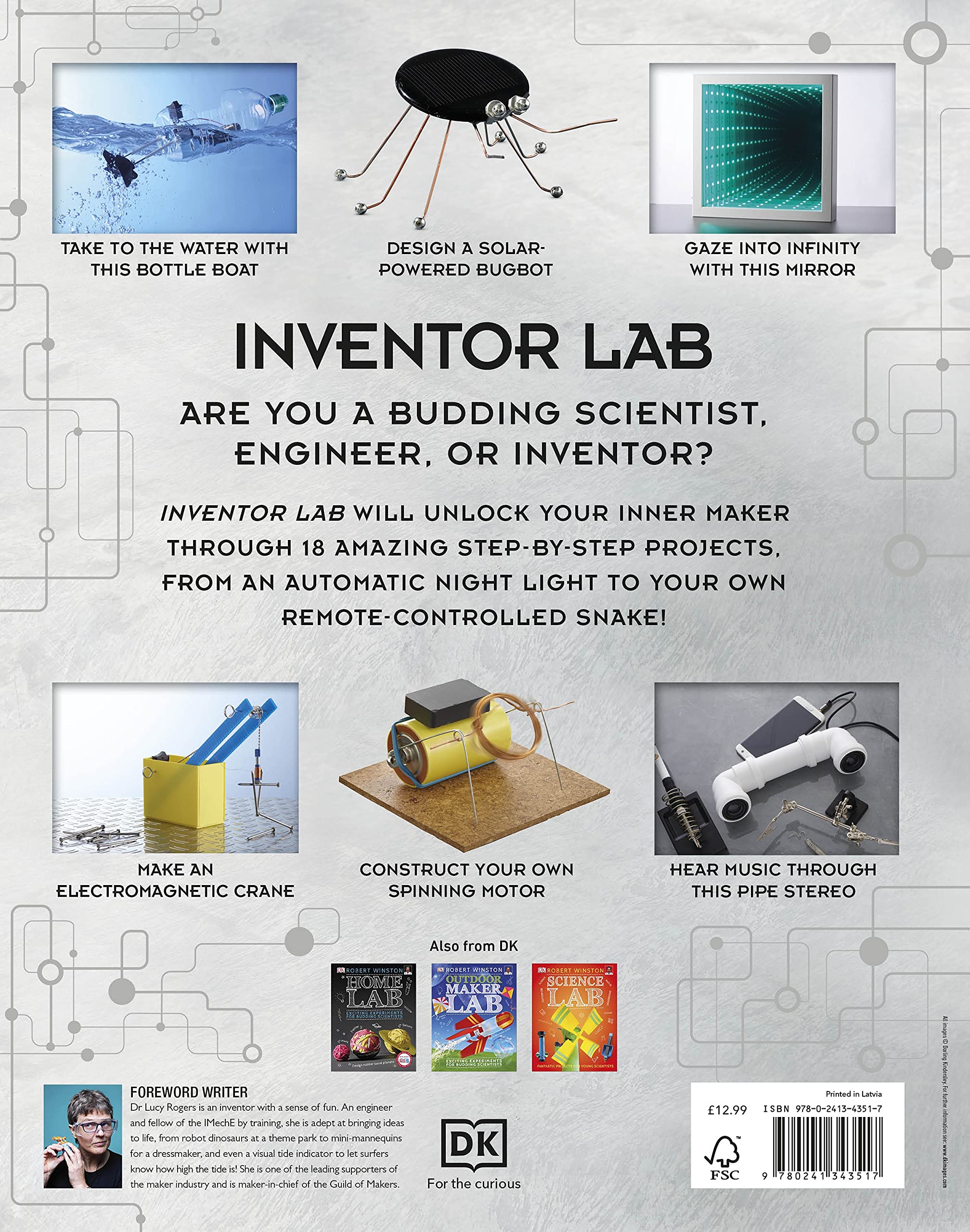 Are you a budding scientist, engineer, or inventorThis children's book will unlock your inner maker through 18 amazing step-by-step science projects, from an automatic night light to your own remote-controlled snake!Inventor Lab is a science activity book for children that is all about building, experimenting, and inventing with technology, electronics, and mechanics at home. Keep your siblings out of your room with a brilliant bedroom alarm, power a propellor motorboat, make a stereo from pipes, and build your own AM radio by following step-by-step instructions and using affordable equipment. Simple steps with clear photographs take readers through the stages of each low-cost project, with fact-filled "How it works" panels to explain the science behind each one, and to fascinate them with real-world examples. The projects progress from the fairly easy, such as constructing a working battery, to more challenging builds, including a remote-controlled snake. This book helps kids enjoy and explore STEM subjects (science, technology, engineering, and maths), an important part of school curricula everywhere. Inventor Lab is the perfect companion for any inquisitive child with an interest in how the worlds of science experiments and technology work, and why.