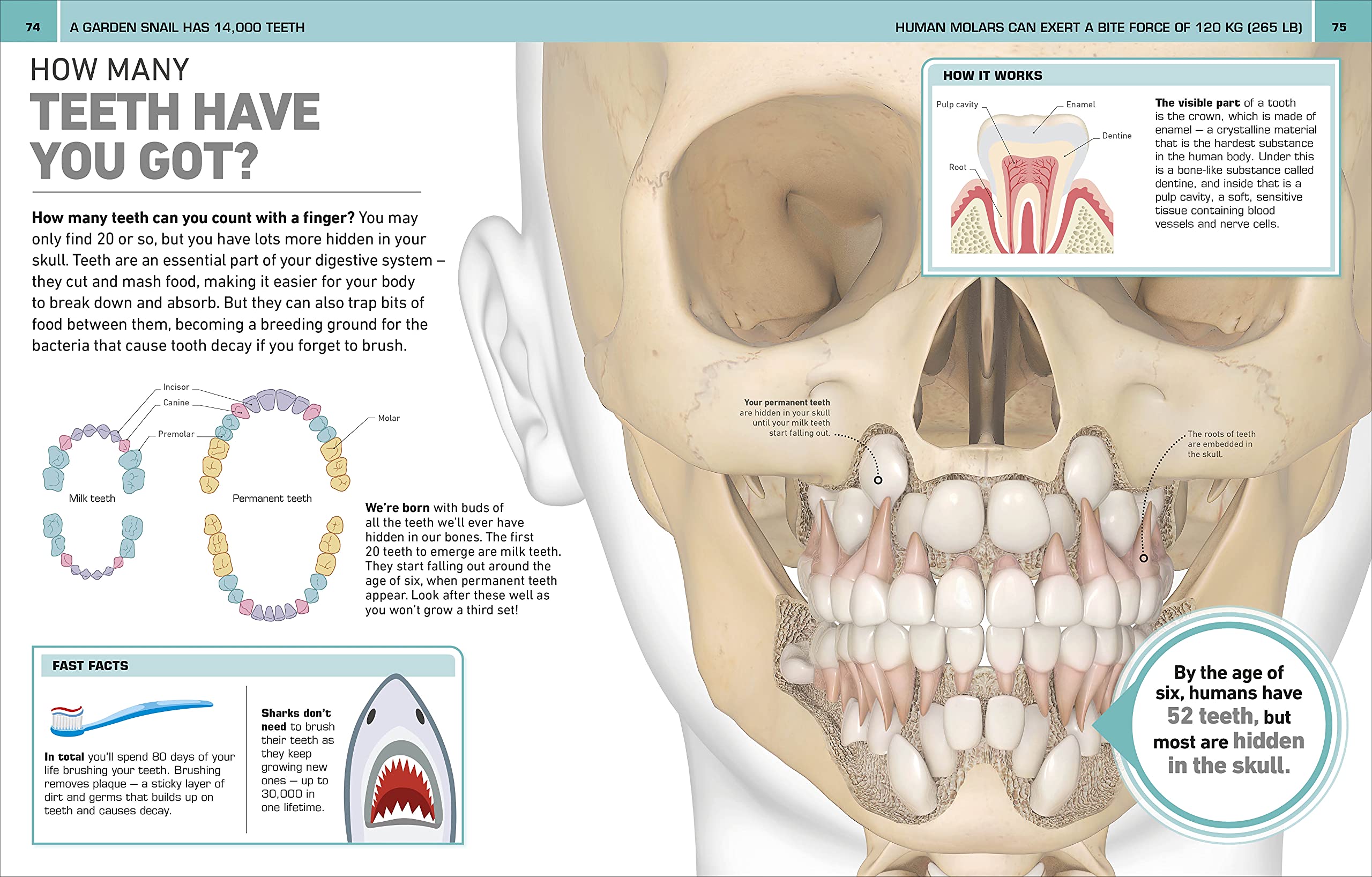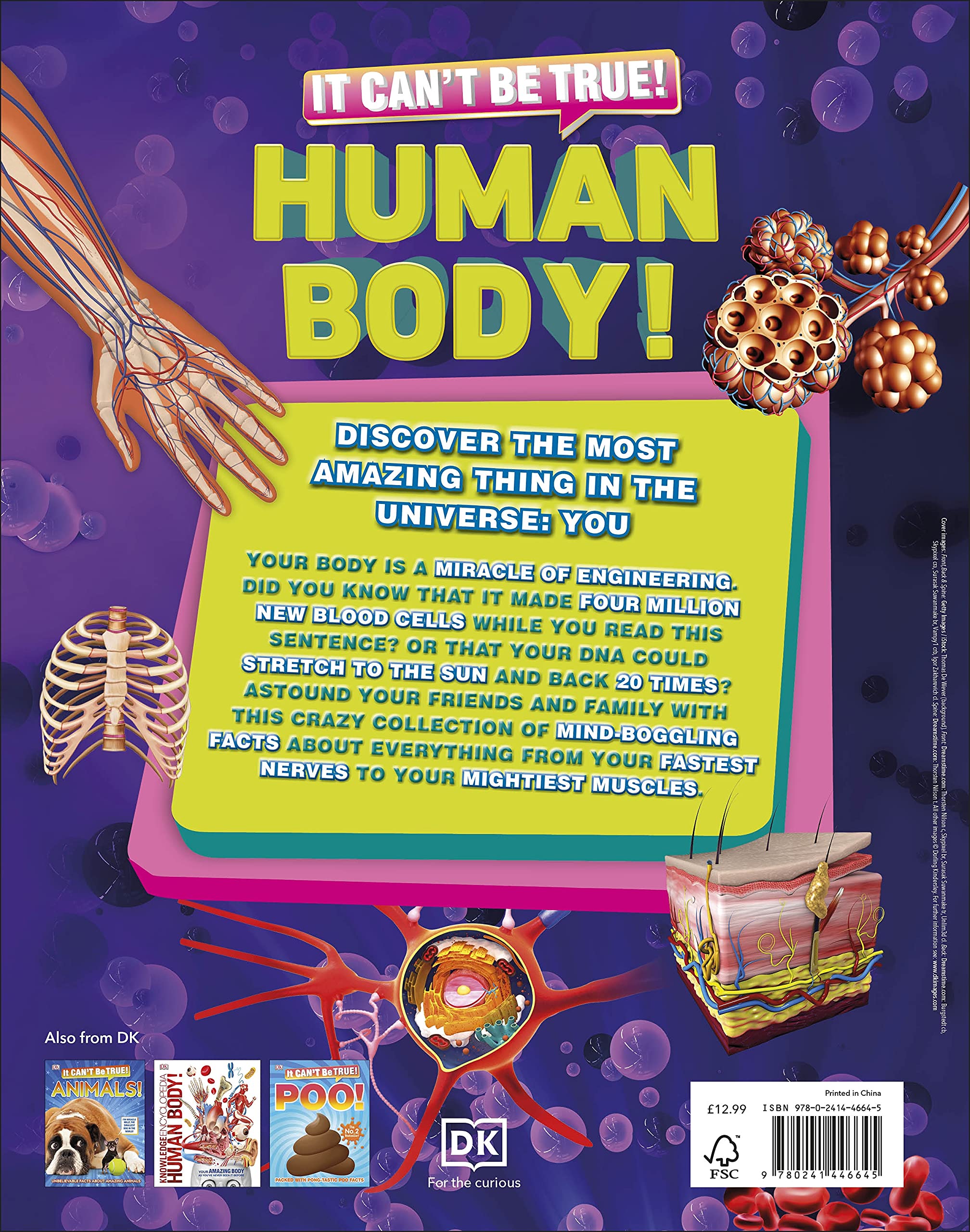 Amazing facts about the human body written in concise sentences and accompanied by lots and lots of colorful diagrams, illustrations, infographics and some stunning electron microscope images.Children and adults alike will enjoy this book. In fact, it would make a wonderful book for a parent to go through together with a young child. Really a marvellous addition for a home library.I would have appreciated some info about the writers’ credentials or a bibliography of resources though. But still a most impressive publication.Love it!