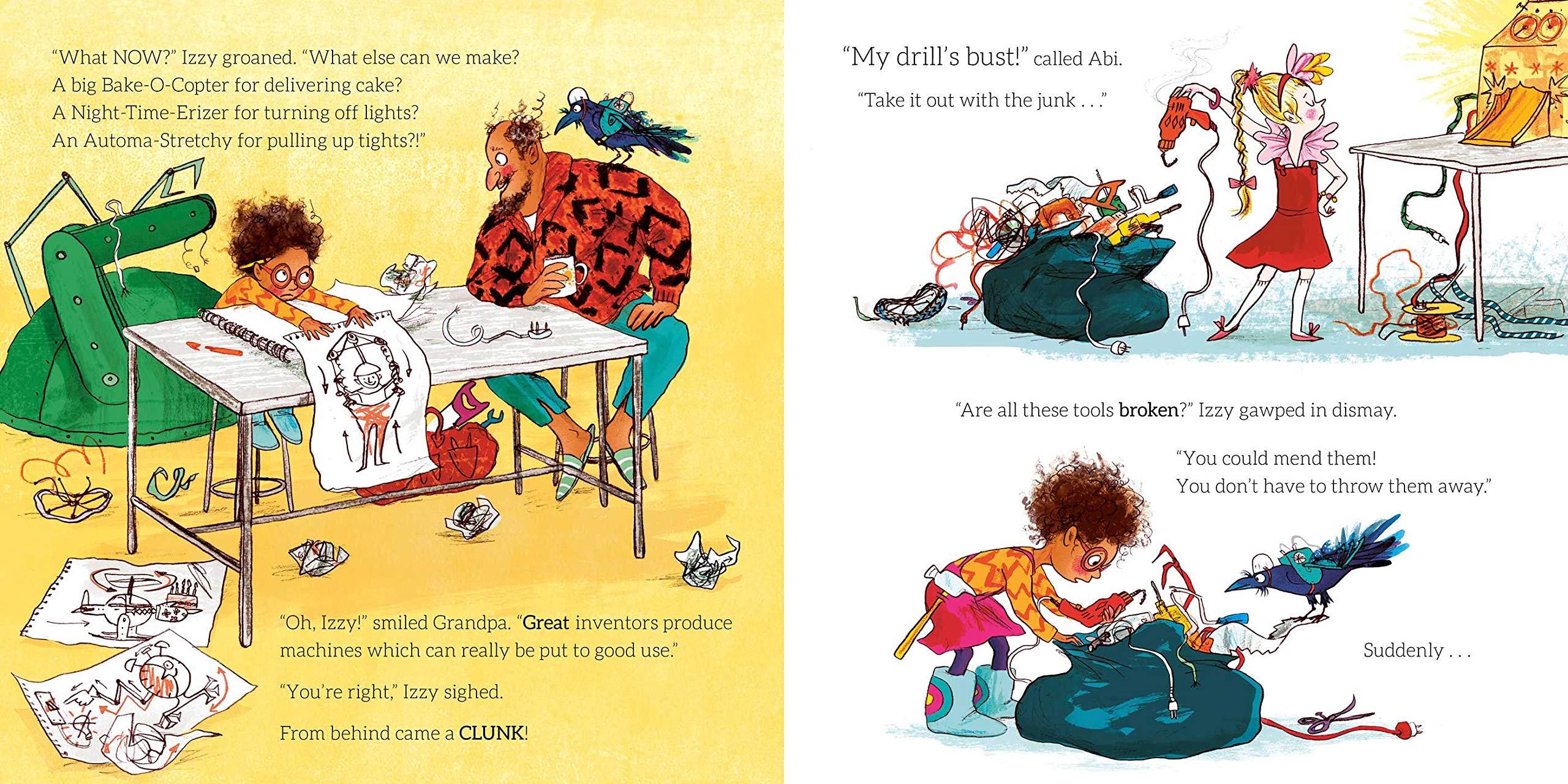 Izzy Gizmo has been invited to Technoff Isle's Genius Convention where the inventor of the best machine will win coveted admittance to the Genius Guild. But with fearsome foe Abi von Lavish getting the best of her at every turn, how can Izzy and Fixer come up with the winning invention? Much-loved heroine Izzy Gizmo returns (together with Grandpa and Fixer) in a wonderfully exuberant story that has serious points to make about the importance of make do and mend.