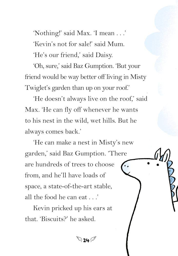 Kevin is a roly-poly flying pony. He has everything he needs - a constant supply of biscuits and his best friend, Max. Misty Twiglet is a famous pop star. She has everything she needs except for a perfectly quirky, one-of-a-kind pet. The roly-poly flying pony kind . . . When Kevin is kidnapped, Max and his sister daisy come to Kevin's rescue, and there's no way they're giving up on him without a fight.