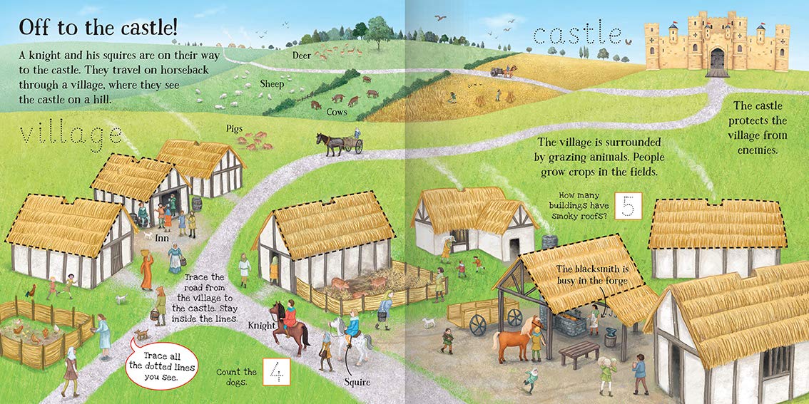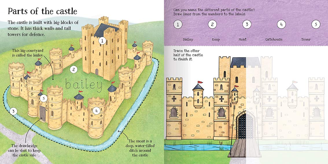 Practise pen control, word and number skills while finding out all about life in a castle. Children will love following the lines, completing puzzles, answering questions from the characters and finding the cat that is hiding on every spread. Then they can simply wipe the pages clean to complete the activities again and again.