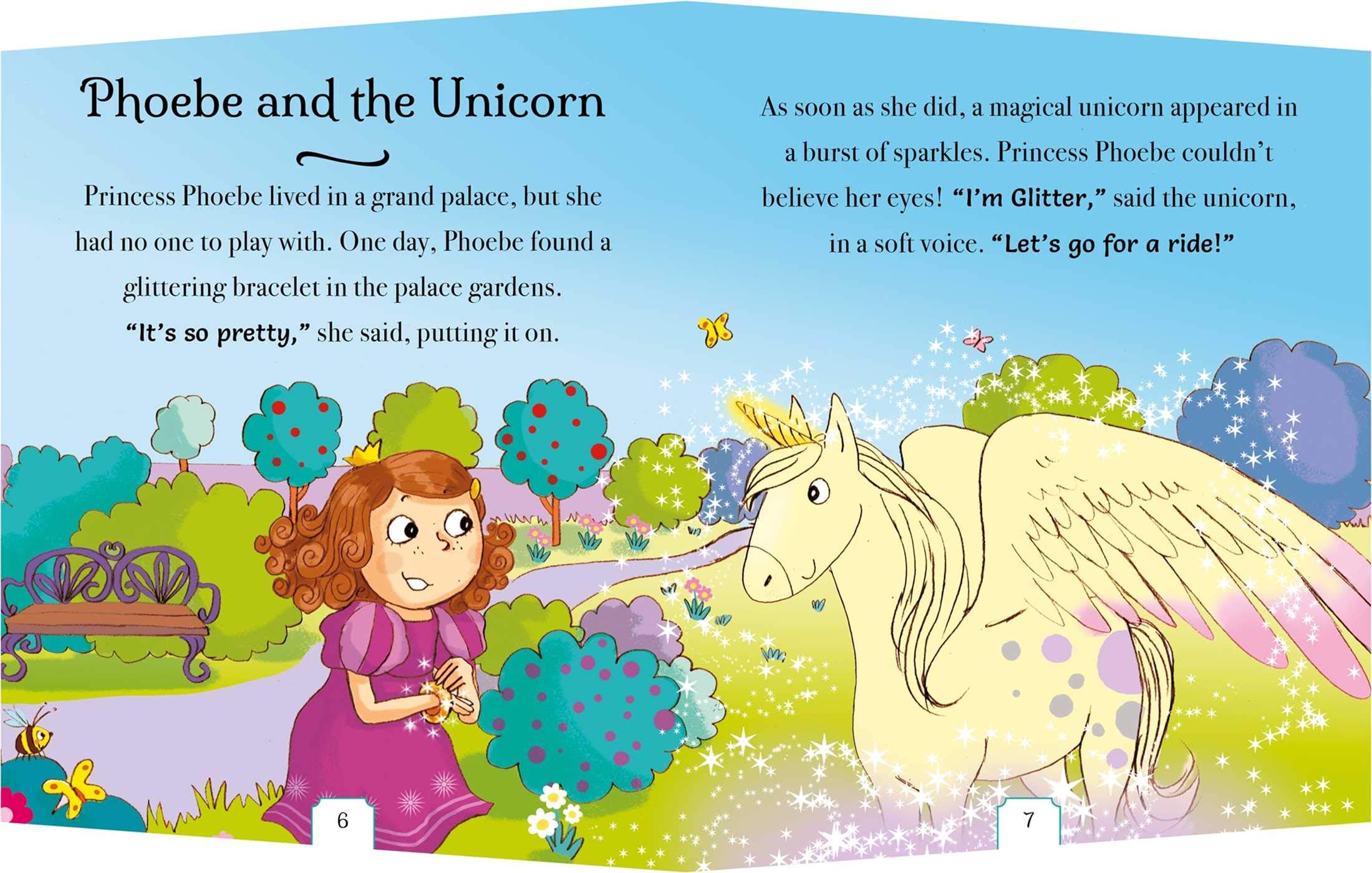 My Magical Story Bag includes 7 stories all about princesses, unicorns, fairies and more, for an enchanting story time. This shaped treasury includes a Velcro closure and cord carry handle for bringing these stories on the go. Story time has never been so much fun as with this mini carry-along collection of tales. There are 7 fantastic stories to choose from inside, each with unforgettable characters. So pick up your handbag to read on the go, and meet a glittering unicorn, a fed-up fairy godmother, a spoiled princess, and many more!