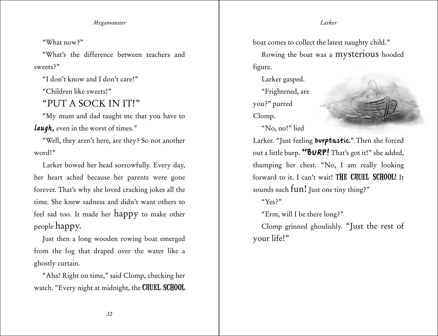 The new children’s book from No. 1 bestselling author David Walliams – a timeless adventure illustrated by artistic genius, Tony Ross.On a volcanic island, in the middle of shark-infested waters, stands The Cruel School. The lessons are appalling, the school dinners are revolting and the teachers are terrifying – especially the mysterious Science teacher Doctor Doktur.When Larker is sent to the school, she quickly realises something very odd is going on… something involving Doctor Doktur, a pair of strange spectacles, and a ‘Monsterfication Machine’. And ultimately she finds herself face to face with a real life Megamonster.There seems to be no escape – but for Larker, nothing is impossible…
