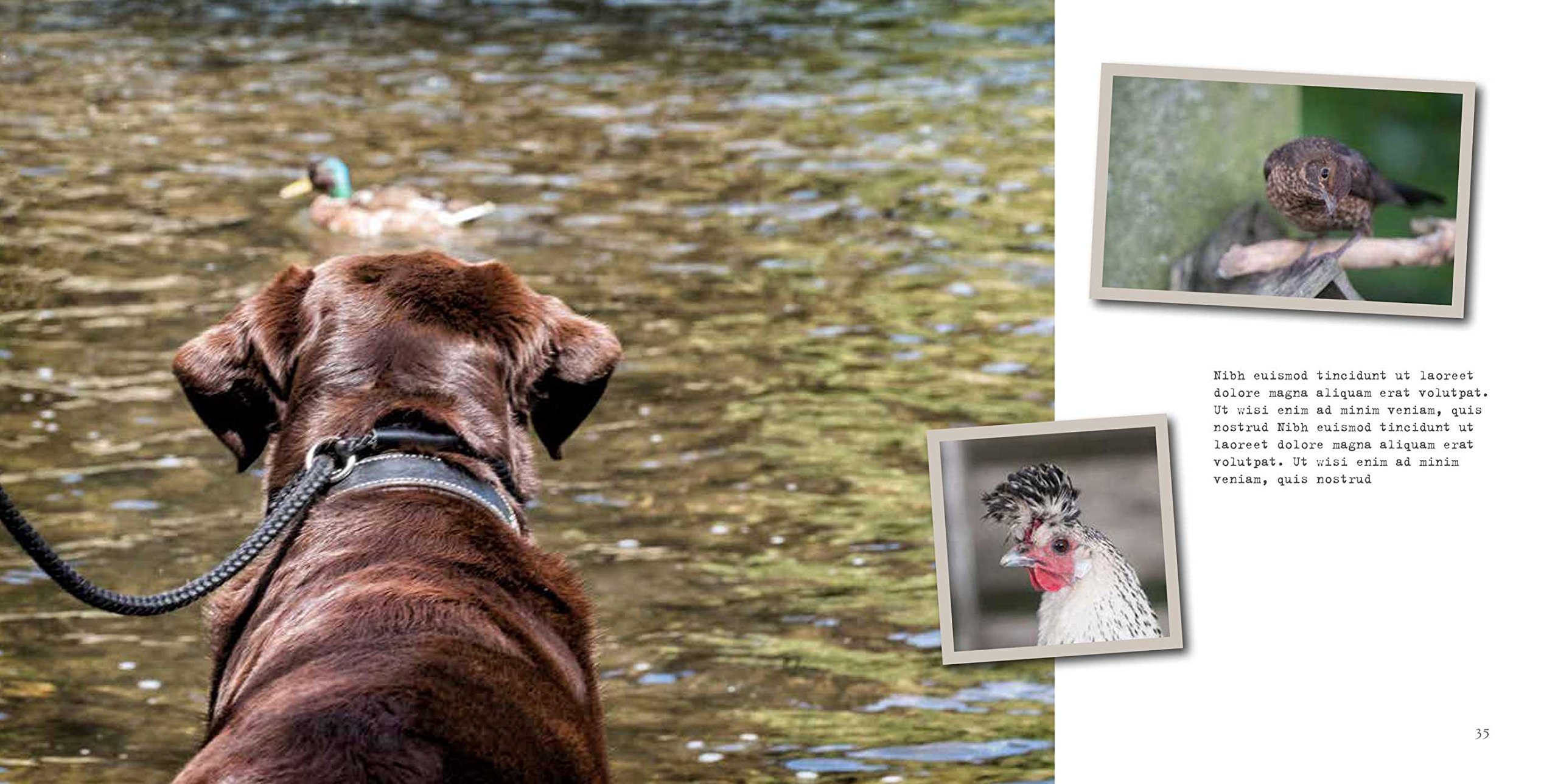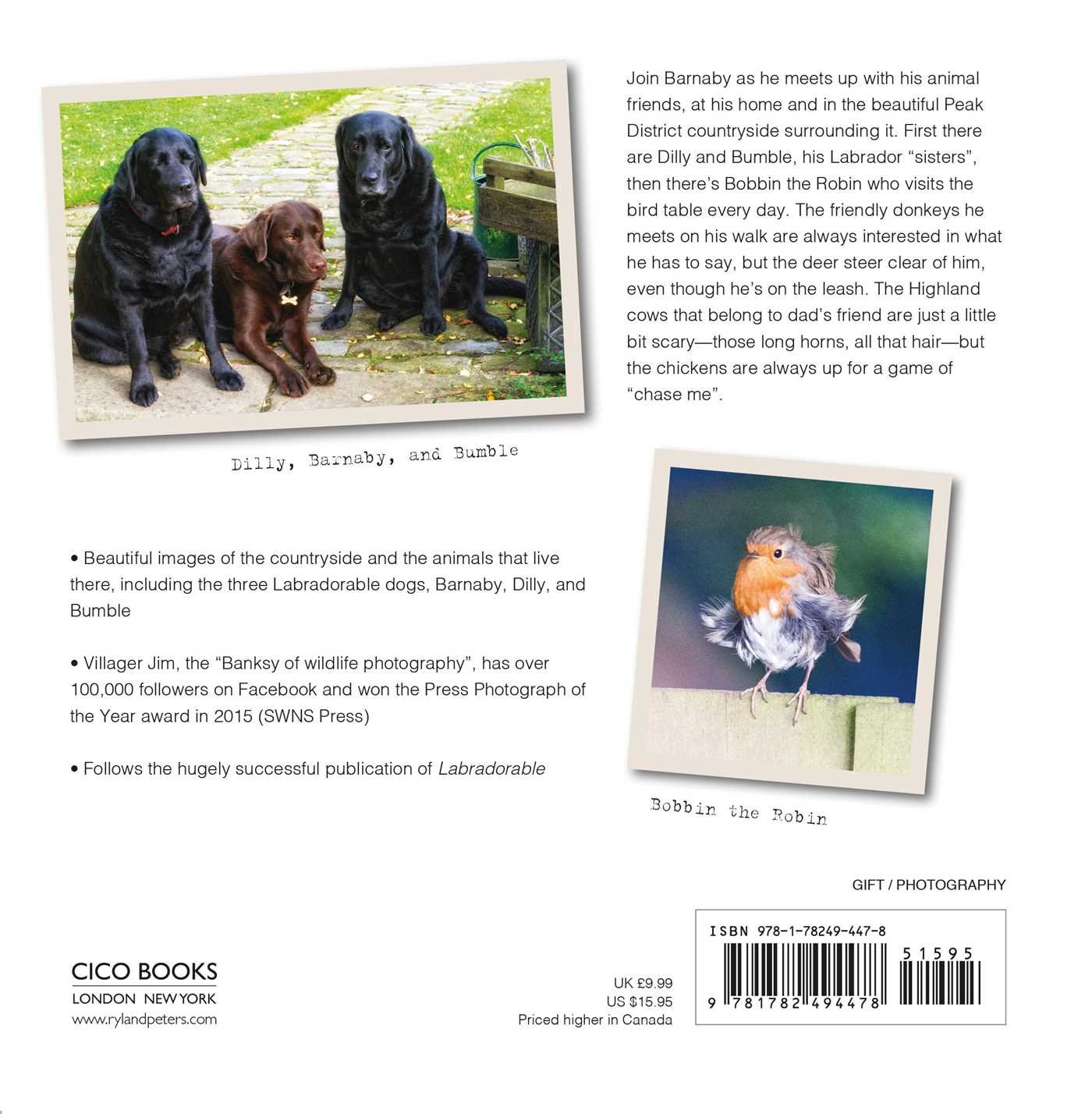 Join Barnaby the labrador and Villager Jim as they meet their animal friendsJoin Barnaby the labrador and Villager Jim as they meet their animal friends Barnaby has many friends, both at his home in the north of England and in the beautiful countryside surrounding it. First there are Dilly and Bumble, his labrador “sisters”, then there’s Bobbin the Robin who visits the bird table every day. The friendly dogs he meets on his walk are always interested in what he has to say, but the deer steer clear of him, even though he’s on the leash. The Highland cattle that belong to dad’s friend are just a little bit scary—those long horns, all that hair—but the chickens are always up for a game of “chase me”. His owner, award-winning photographer Villager Jim, captures these meetings on camera, allowing us all into Barnaby's world.