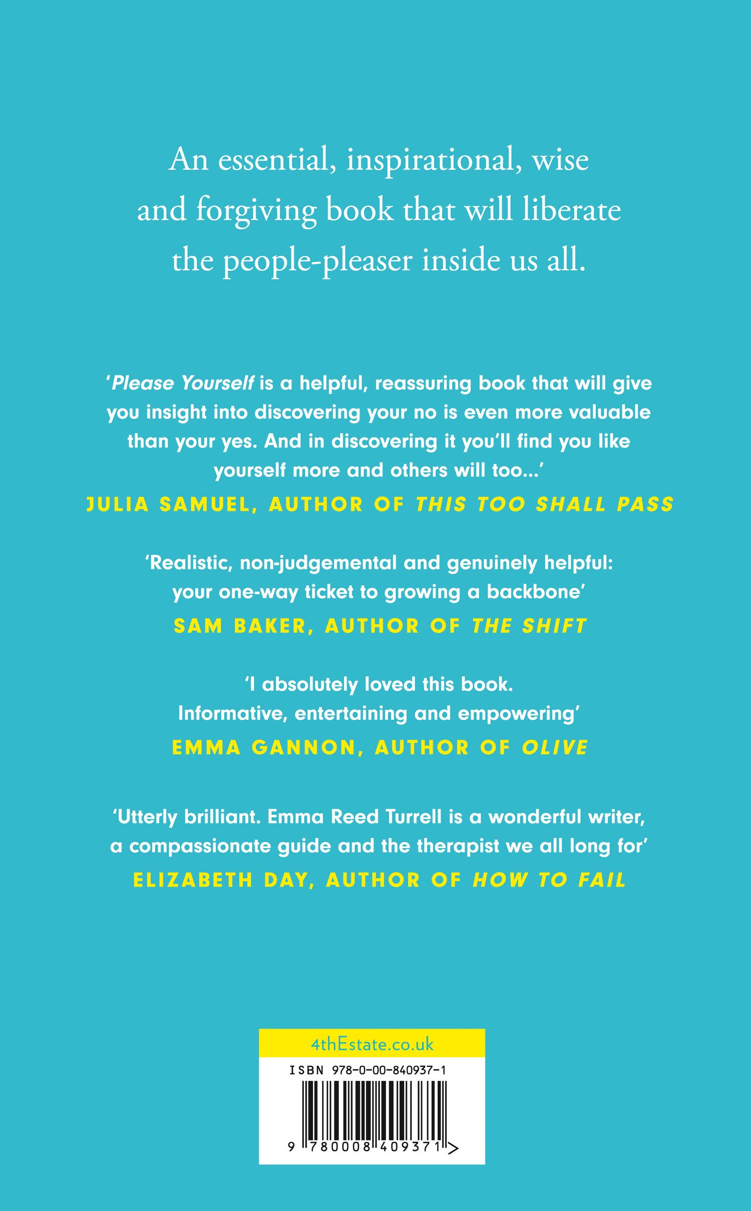 The Courage to be Disliked meets The Subtle Art of Not Giving a F*ck: an essential, inspirational, wise and forgiving book that will liberate the people pleaser inside us all.This book will teach you how to be youWe all know how it feels to want people to like us, to approve of us, to accept us. It’s part of what makes us human. And there’s nothing wrong with wanting to support other people and help them satisfy their needs.The problem comes when we give up our own needs along the way.Because when we give to make others like us or approve of us, to shore up our own sense of self-worth, to feel needed or to avoid painful emotions, then we give to get. And rarely do we get what we really need.Emma Reed Turrell works with people pleasers every day in her clinical practice as a psychotherapist – clients wrestling with the complicated dilemmas of a life in which you can’t please everyone, but you don’t yet have the permission you need to please yourself.In this groundbreaking, reassuring and essential book she presents an alternative to people-pleasing. Through the stories of people-pleasers across all walks of life she offers insights and techniques that will help you understand yourself more fully and live more authentically.It will help you get better at being disliked, instead of staying quiet. It will help you recover instead of fearing failure. It will teach you acceptance instead of avoidance and show you how to grow instead of staying small.Above all it will help you care better for others, without taking on their problems, through caring better for yourself.