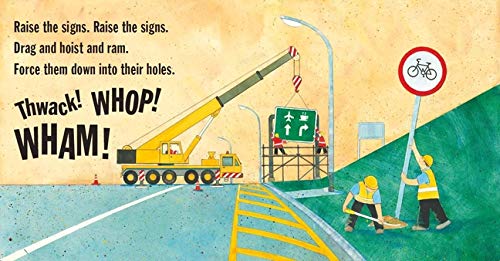 It's fun to watch the road being built in this noisy, action-packed picture book! Move the earth. Move the earth. Dig and cut and push. Clear a pathway for the road. Screech! Boom! Whoosh! Tip the stones. Tip the stones. Lift and slide and dump. Lay the groundwork for the road. Crash! Roar! Thump! Full of shout-aloud noise words, rhythm and rhyme, this boisterous book follows the process of building a road from beginning to end. Children will love recognizing familiar sights, from diggers to road signs, in the bright, bold art. It is full of noisy vehicles and clanking machinery - a fun and informative picture book. It contains an illustrated glossary naming and describing each road-building vehicle.