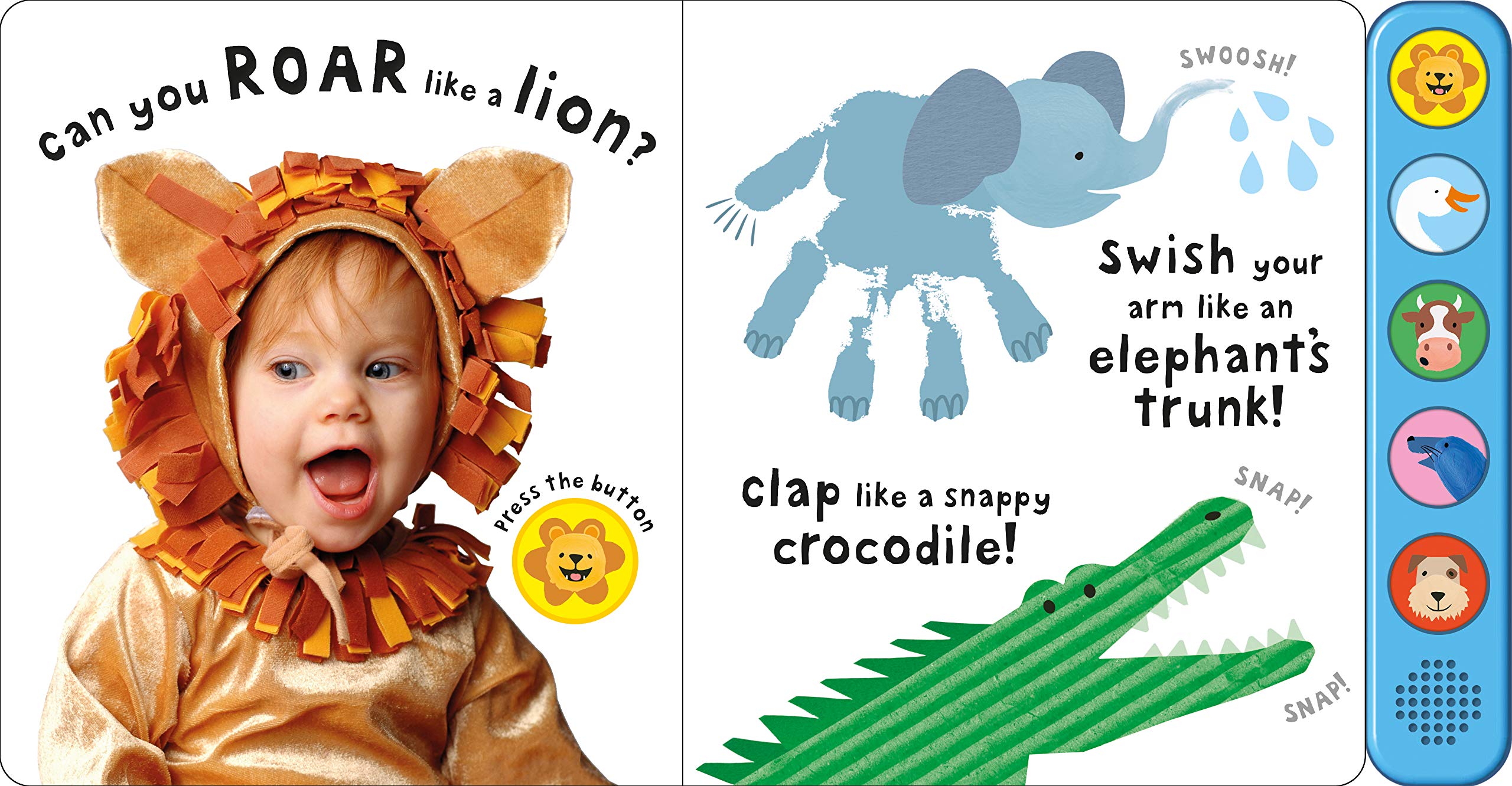 There's lots to explore and hear in See, Touch, Feel: Roar by Priddy Books. With a sound module that plays five realistic animal sounds, this sturdy board book is specially designed to stimulate babies through sensory play. Each page has colorful images that encourage babies and parents to have fun together by recreating animal sounds and movements.See, Touch, Feel: Roar is ideal for developing babies' language recognition and motor skills. With bright, photographic images and amazing sounds to play again and again, See, Touch, Feel: Roar is the perfect book for helping babies learn their animal sounds.Also available: See, Touch, Feel; See, Touch, Feel: Halloween; See, Touch, Feel: Create; See, Touch, Feel: ABC; See, Touch, Feel: Spring.