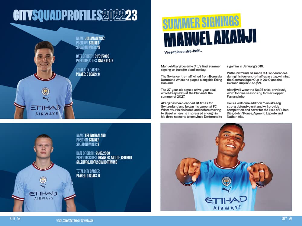 The Official Manchester City Soccer Annual 2023 is the perfect gift for any City fan. Packed with facts, stats, player profiles of all the first team squad, The Big City Quiz, picture puzzles, word searches and a crossword to solve, plus pen pics of all the summer signings and much more! IMAGE OF 2022 ANNUAL FOR ILLUSTRATIVE PURPOSES ONLY