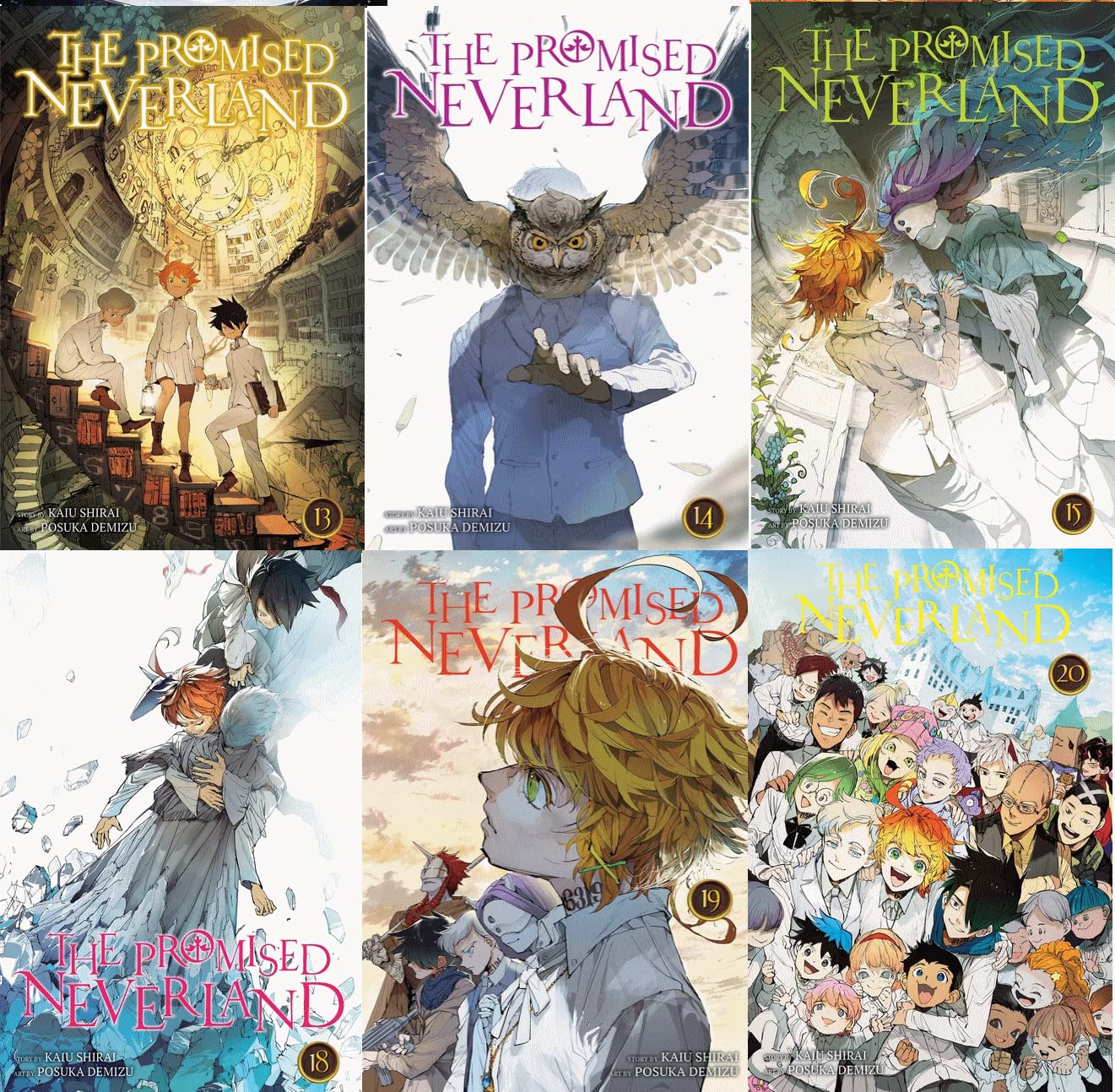 The children of the Grace Field House orphanage must escape a macabre fate before it's too late. Life at Grace Field House is good for Emma and her fellow orphans. While the daily studying and exams they have to take are tough, their loving caretaker provides them with delicious food and plenty of playtime. But perhaps not everything is as it seems... Behind the facade of a happy orphanage, the children of Grace Field House are secretly being raised as food for demons! Determined to save themselves and the other kids, Emma, Norman and Ray begin planning an escape. But their caretaker, "Mom," has brought in extra help to keep the orphans in line... 9781421597126The Promised Neverland, Vol. 1 9781421597133The Promised Neverland, Vol. 2 9781421597140The Promised Neverland, Vol. 3 9781421597157The Promised Neverland, Vol. 4 9781421597164The Promised Neverland, Vol. 5 9781974701476The Promised Neverland, Vol. 6 9781974702244The Promised Neverland, Vol. 7 9781974702299The Promised Neverland, Vol. 8 9781974704873The Promised Neverland, Vol. 9 9781974704989The Promised Neverland, Vol. 10 9781974708383The Promised Neverland, Vol. 11 9781974708888The Promised Neverland, Vol. 12 9781974708895The Promised Neverland, Vol. 13 9781974710164The Promised Neverland, Vol. 14 9781974714995The Promised Neverland, Vol. 15 9781974717019The Promised Neverland, Vol. 16 9781974718146The Promised Neverland, Vol. 17 9781974719785The Promised Neverland, Vol. 18 9781974721832The Promised Neverland, Vol. 19 9781974721863The Promised Neverland, Vol. 20