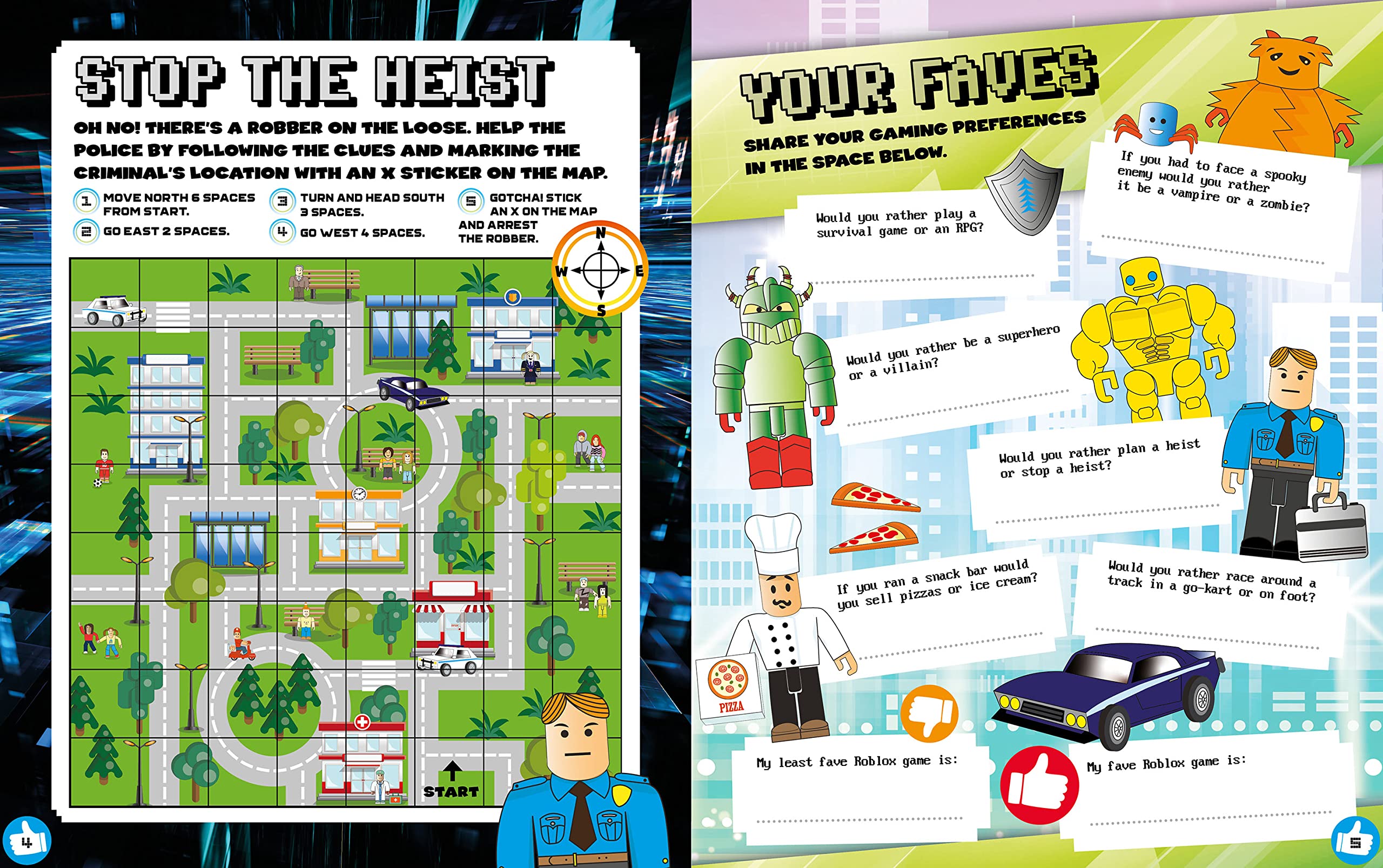 Get ready for a gaming sticker adventure with this exciting book, perfect for Roblox fans. Bursting with puzzles, colouring and sticker activities this cool book is sure to make a great book for young gamers. With over 2000 stickers to use inside the book and out it's sure to be a hit!