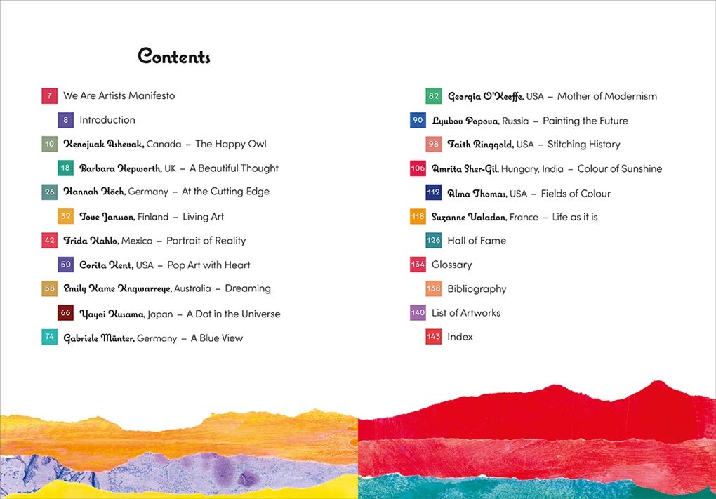 Wonderfully illustrated throughout, this book tells inspiring stories of fifteen women artists who made a lasting impact on art and the world through their lives and work.A richly illustrated book, We Are Artists celebrates the life and work of fifteen female artists from around the globe and the distinctive mark they made on art. Presented as a collection of exciting biographical stories, each section reveals how the artist’s unique approach and perspective provided art and society with a new way of seeing things.We Are Artists places the spotlight on women painters, sculptors, printmakers, illustrators, designers, and craftswomen who created monumental artwork, often against daunting odds. The book includes reproductions of modern and contemporary artwork by Frida Kahlo, Yayoi Kusama, Georgia O’Keeffe, Alma Thomas, and Kenojuak Ashevak, to name a few. Through their personal stories, readers will learn about the art movements each artist worked in and the influence they exerted on both the art world and society as a whole.This book starts to rewrite art history for the next generation, and will inspire young readers and artists everywhere. Illustrated in color throughout
