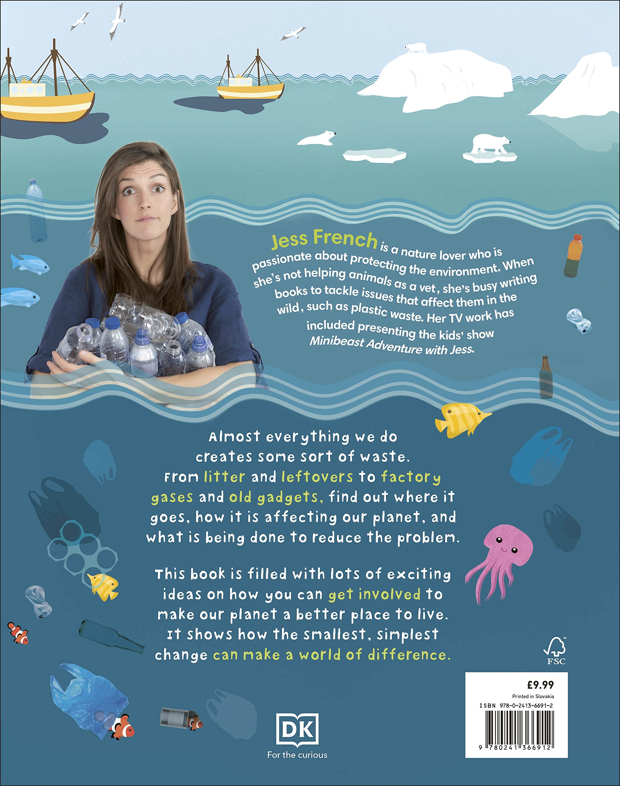 Everything you need to know about what we're doing to our environment, good and bad, from pollution and litter to renewable energy and plastic recycling.This environmental book will teach keen young ecologists about our actions affect planet Earth. Discover shocking facts about the waste we produce and where it goes. Did you know that every single plastic toothbrush ever made still exists? Or that there's a floating mass of rubbish larger than the USA drifting around the Pacific Ocean? It's not all bad news though. As well as explaining where we're going wrong, What a Waste shows what we're doing right! Discover plans already in motion to save our seas, how countries are implementing schemes that are having a positive impact, and how your waste can be turned into something useful. Every small change helps our planet!