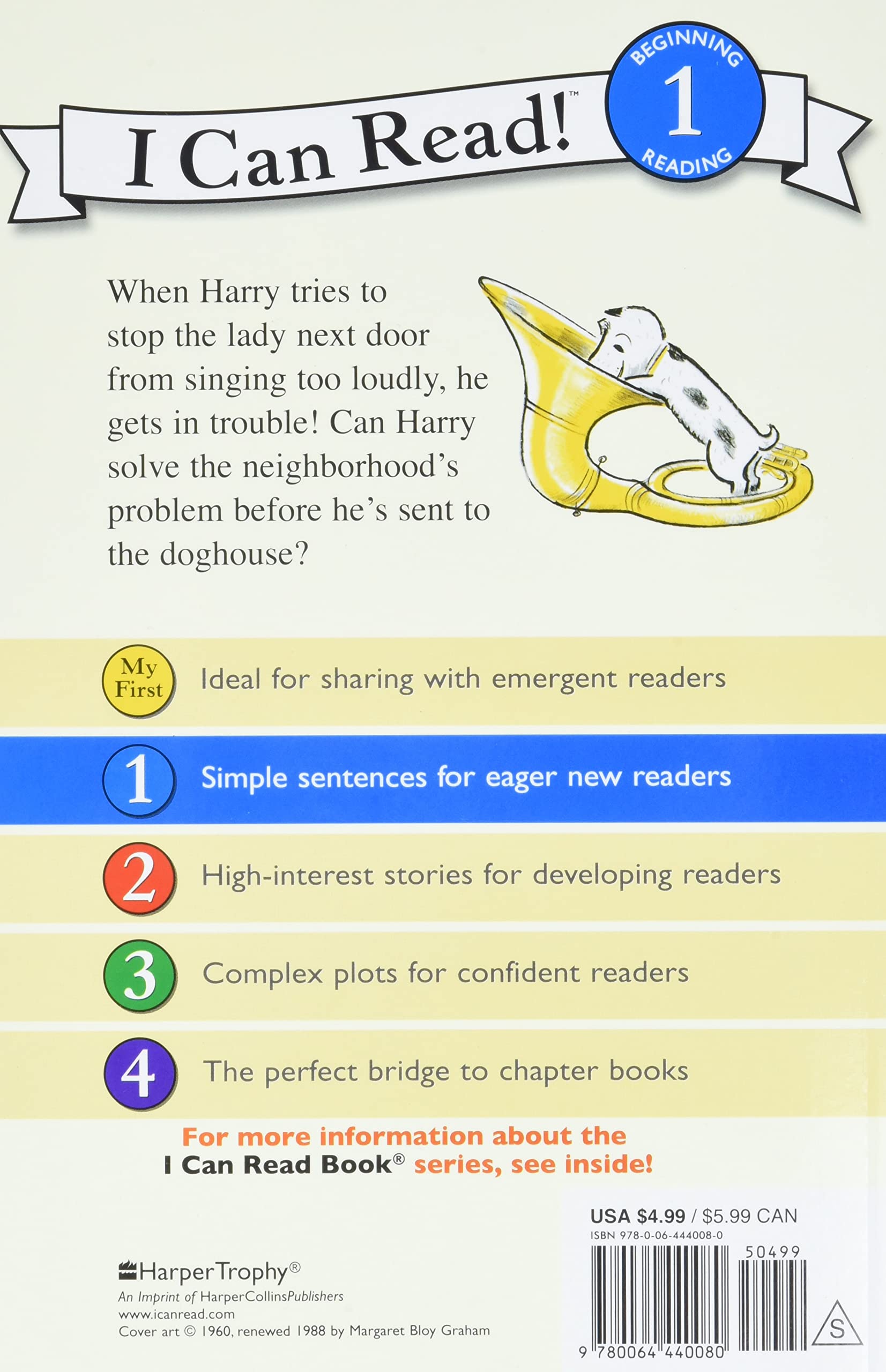 A funny I Can Read story featuring the beloved Harry the Dirty Dog!Harry, the mischievous little white dog with black spots, tries everything he can think of to get the lady next door to stop singing. Every time Harry tries to stop her, he gets in trouble! Can Harry solve the neighborhood's problem before he's sent to the doghouse? This is an irresistible story featuring a classic picture book character, especially perfect for young dog lovers and fans of Harry the Dirty Dog. Harry the Dirty Dog has been recognized by the National Education Association as an all-time top-100 children's book. It has also been welcomed by a new generation at home, as Betty White's 2020 reading of the story on StorylineOnline has been viewed more than 8 million times.For more fun with Harry the Dirty Dog, don't miss No Roses for Harry! and Harry by the Sea.