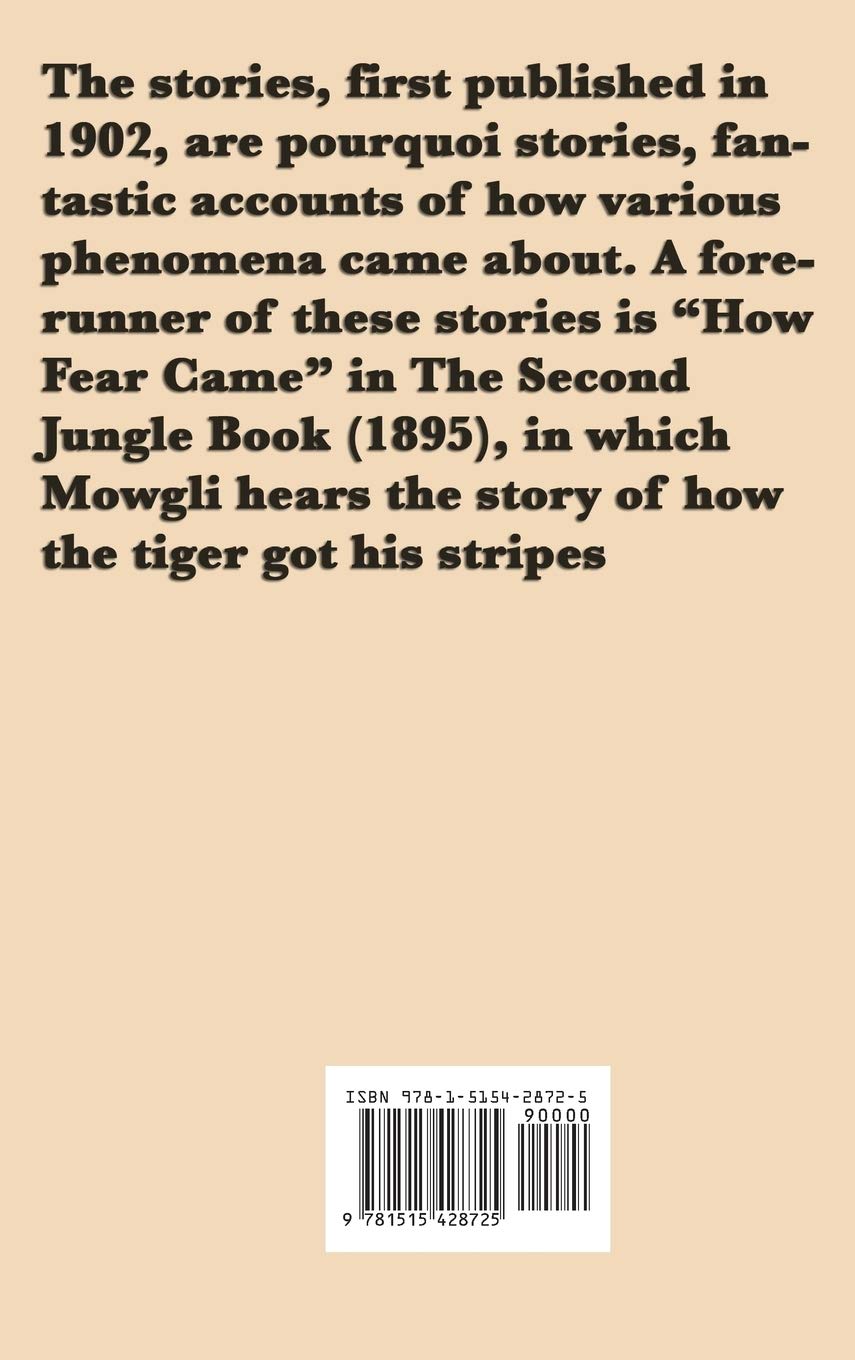 Just So Stories for Little Children is a 1902 collection of origin stories by the British author Rudyard Kipling. Considered a classic of children's literature, the book is among Kipling's best known works.Kipling began working on the book by telling the first three chapters as bedtime stories to his daughter Josephine. These had to be told "just so" (exactly in the words she was used to) or she would complain. The stories illustrate how animals obtained their distinctive features, such as how the leopard got his spots.