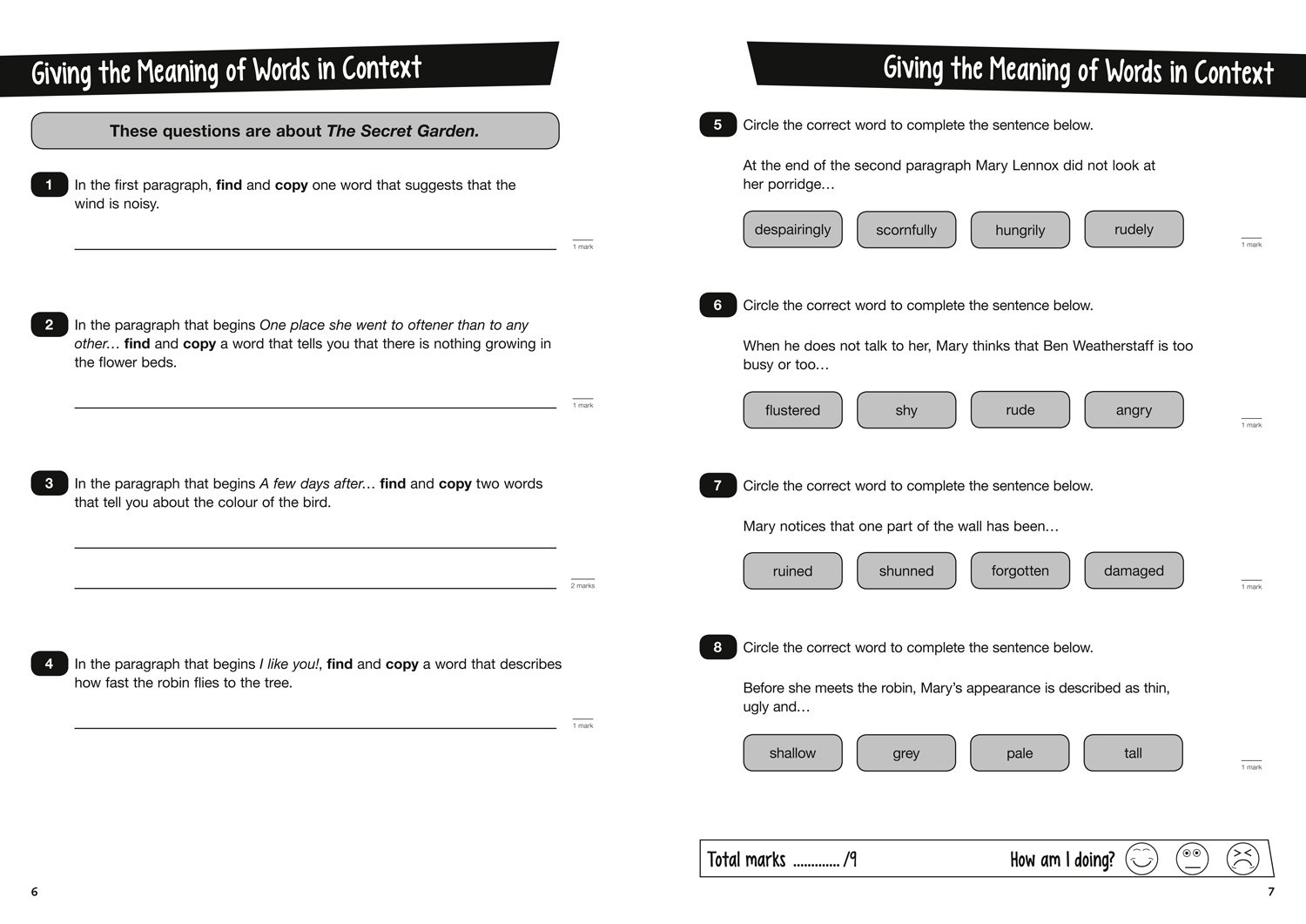 This book is clearly based on the premise that the reading test for the new curriculum is challenging. While the questions are like the actual SATs, the reading texts are mostly inappropriatly hard. Grouping the question types together also makes little sense as it fails to mirror the SATs. All in all, this is a bad book.One more thing I realised is how bad ly designed the vocabulary questions are. The SATs ask children to give the meaning of a word from a list of words the children are likely to know. What is the point of asking the meaning of a word people don't know from a list people also don't know? This is terrible.