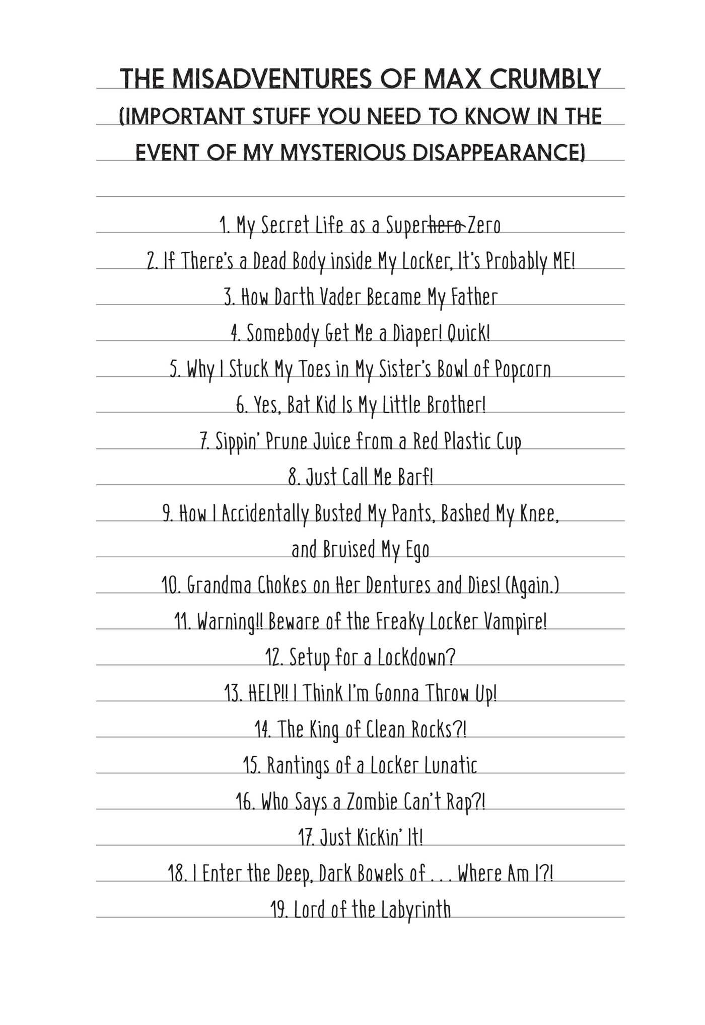 Meet Max Crumbly in this series from #1 New York Times bestselling Dork Diaries author Rachel Renée Russell! Max Crumbly is about to face the scariest place he’s ever been: South Ridge Middle School. There’s a lot that’s great about his new school, but there’s also one big problem—Doug, the school bully whose hobby is stuffing Max in his locker. If only Max could be like the hero in his favorite comics. Unfortunately, Max’s uncanny, almost superhuman ability to smell pizza from a block away won’t exactly save any lives or foil bad guys. But that doesn’t mean Max won’t do his best to be the hero his school needs!
