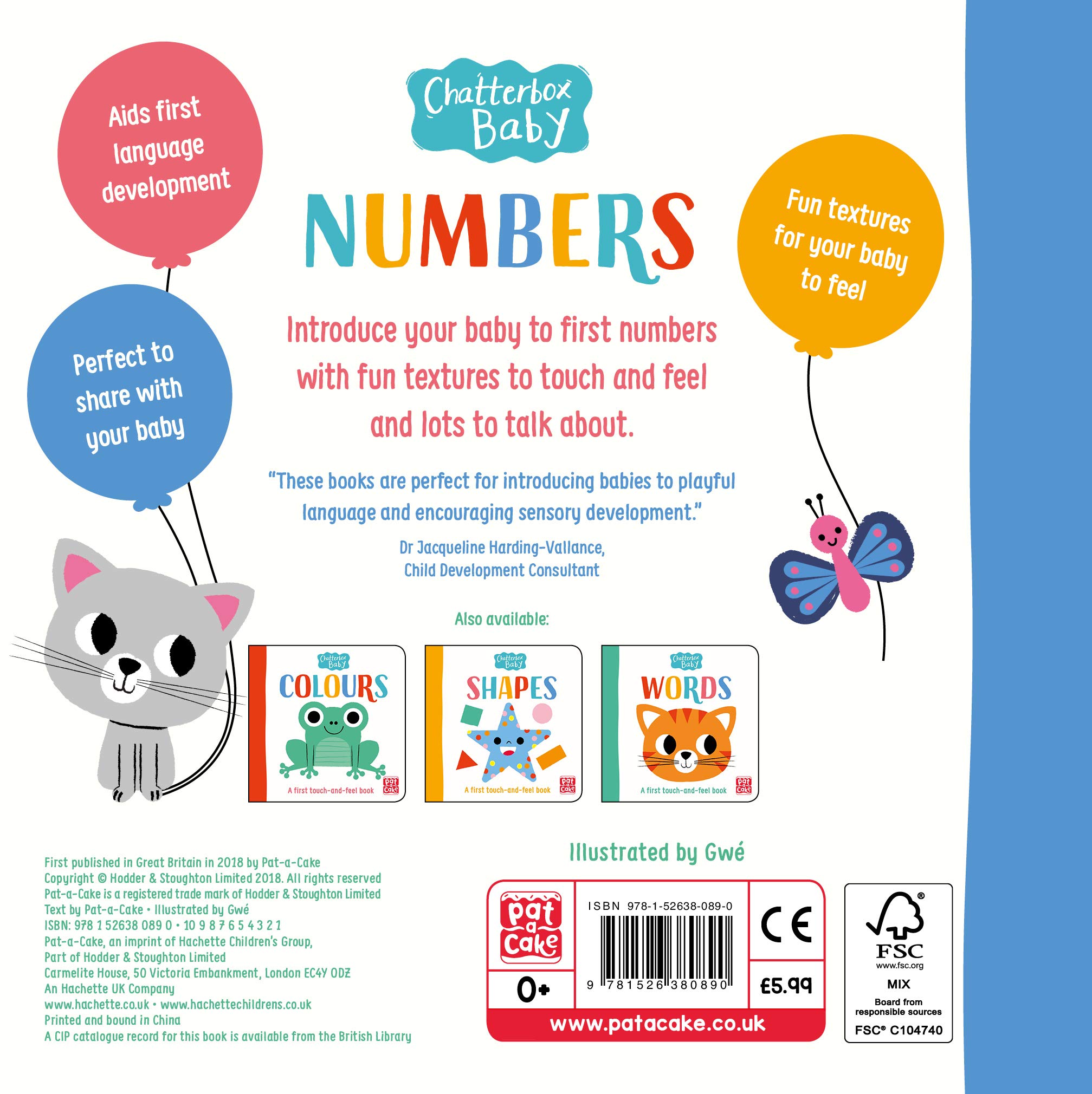 This bright and bold touch-and-feel book all about numbers is perfect to share with babies to help develop their language. Talking to babies is absolutely vital from the day they are born. These books are specially created to help bathe babies in language - the key to later speech development. With a touch-and-feel on every page, the charming art and engaging text in Chatterbox Baby: Numbers gives parents and babies lots to explore, touch and chat about together. Also available: Chatterbox Baby: Words, Chatterbox Baby: Shapes, Chatterbox Baby: Colours