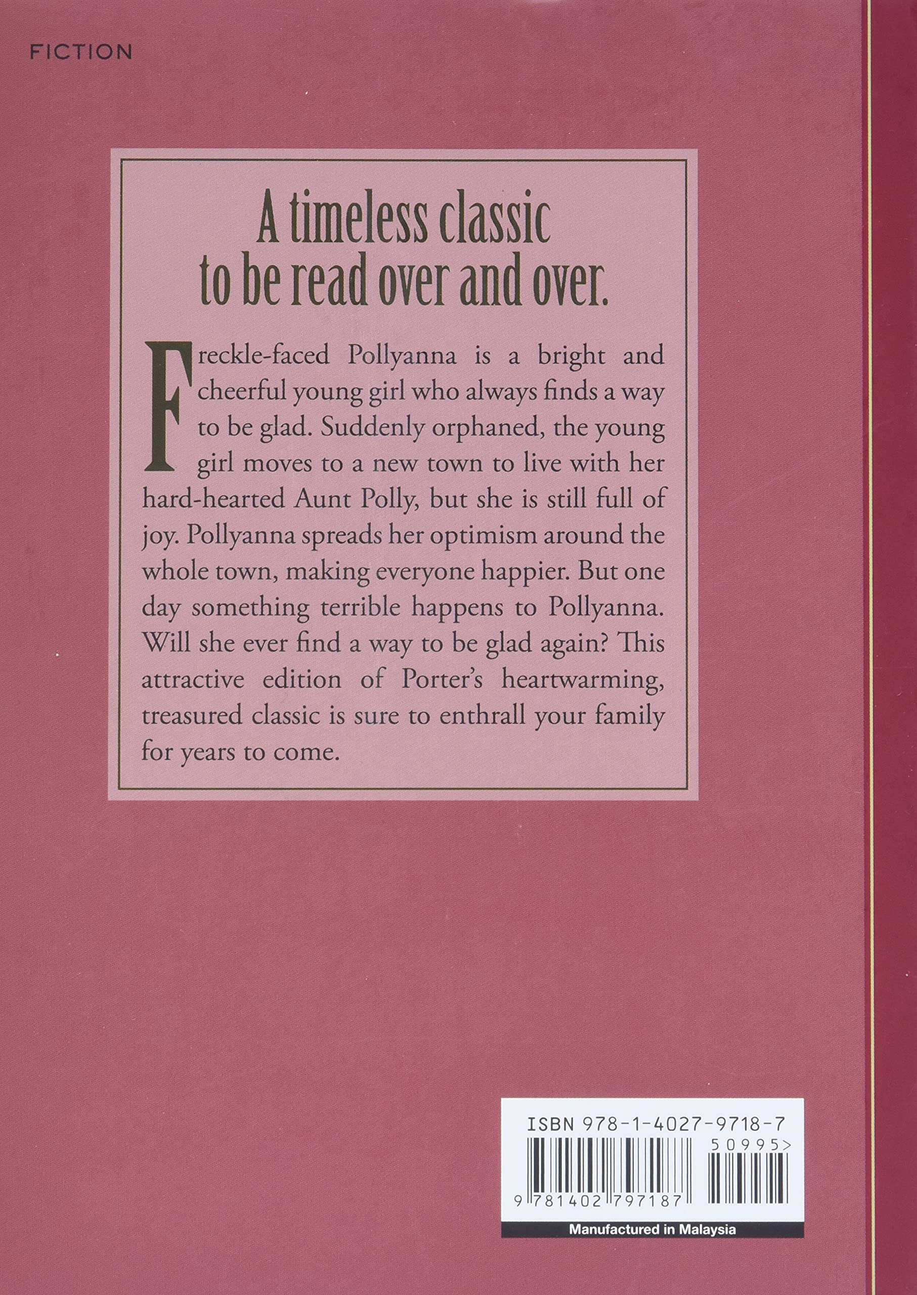 Chatty, idealistic Pollyanna can always find something to be glad about. Even when the newly orphaned girl has to live with her cold, unloving Aunt Polly, she remains full of hope and joy. But then a horrible accident leaves her crippled—and it may finally be too much for Pollyanna to bear. Will all the people whose lives shes brightened be able to make her happy again?