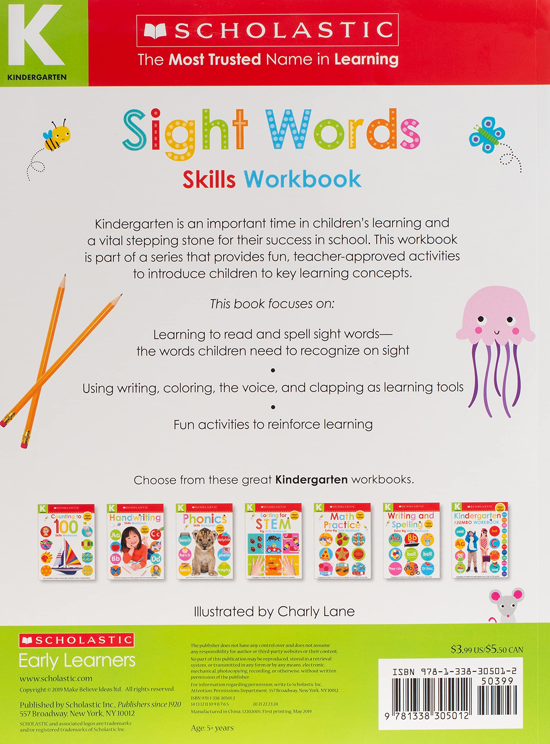 Build and develop essential skills for kindergarten success with this activity workbook all about sight words from Scholastic Early Learners!A strong educational foundation helps ensure a child is able to benefit from the learning opportunities available at kindergarten. In Kindergarten Skills Workbook: Sight Words, children in kindergarten can practice their sight words in a more in-depth way. The bright colorful pages with a delightful blend of photographs and illustrations make these workbooks some of the most eye-catching and engaging available for this age group. And two pages of stickers will help reinforce the learning and keep little ones excited and ready for the next step in school!Scholastic Early Learners: Interactive books for hands-on learning. Perfect for babies, toddlers, preschoolers, kindergartners, and first graders, too!