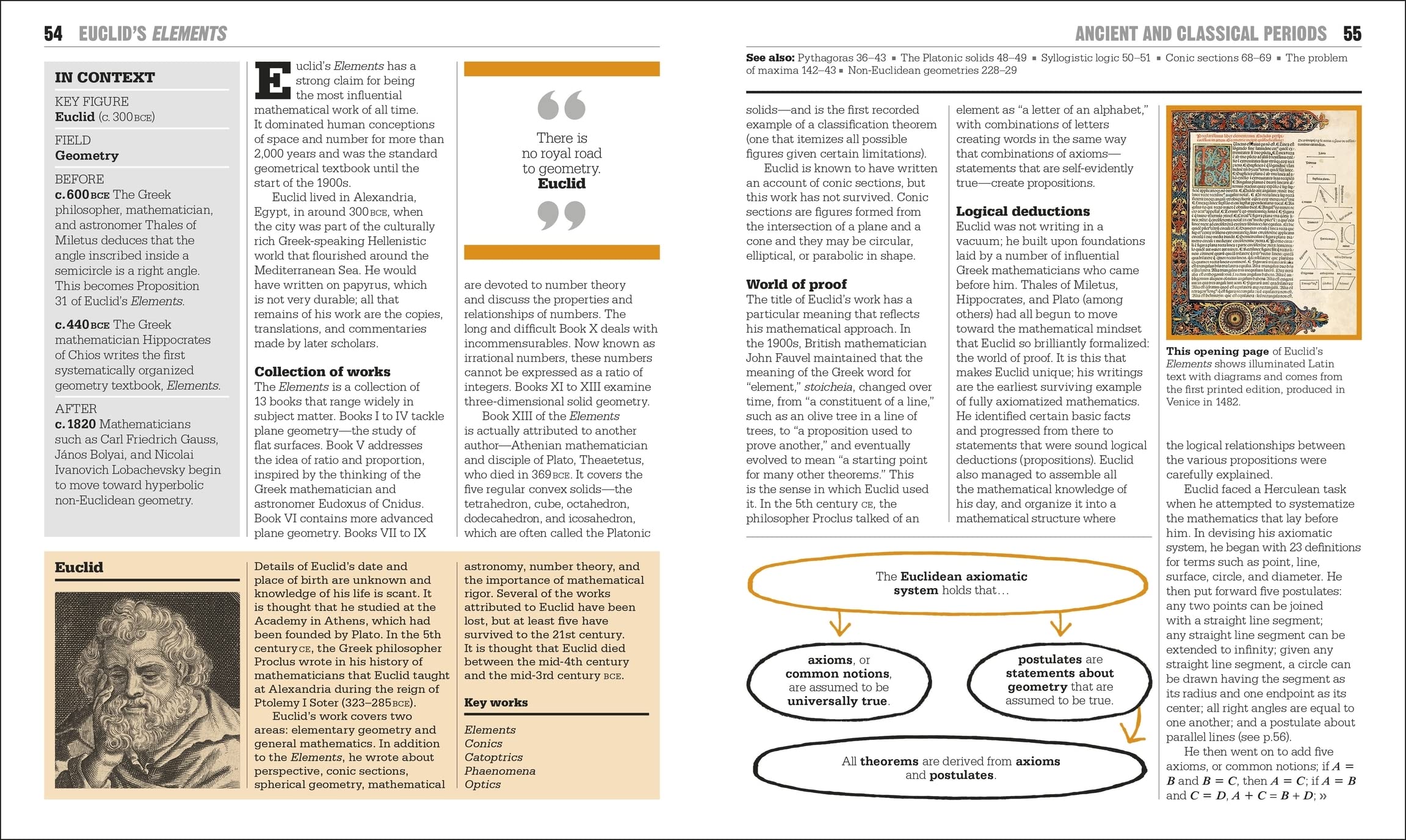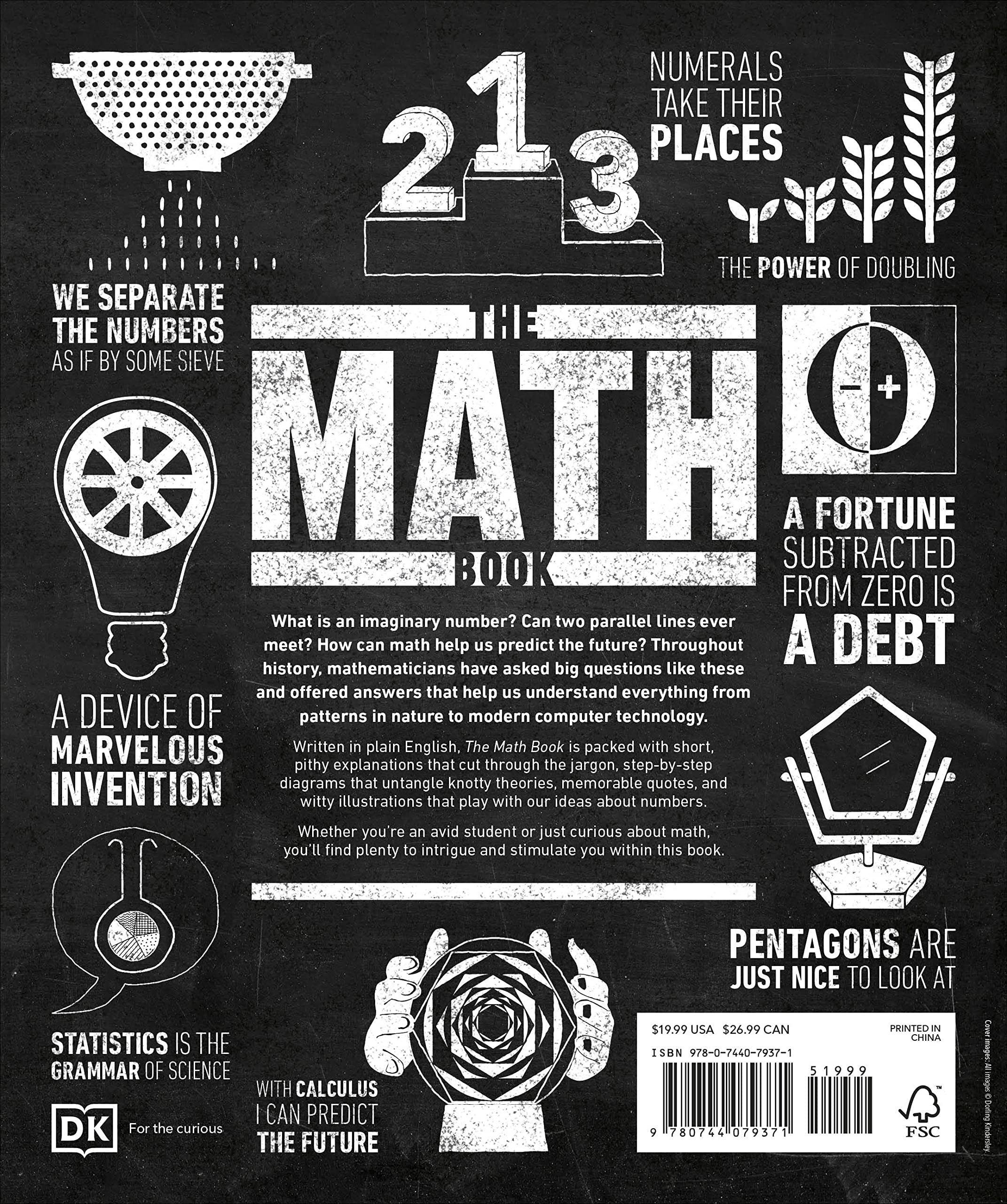 Learn about the most important mathematical ideas, theorems, and movements in The Math Book.Part of the fascinating Big Ideas series, this book tackles tricky topics and themes in a simple and easy to follow format. Learn about Math in this overview guide to the subject, brilliant for novices looking to find out more and experts wishing to refresh their knowledge alike! The Math Book brings a fresh and vibrant take on the topic through eye-catching graphics and diagrams to immerse yourself in. This captivating book will broaden your understanding of Math, with:- More than 85 ideas and events key to the development of mathematics- Packed with facts, charts, timelines and graphs to help explain core concepts- A visual approach to big subjects with striking illustrations and graphics throughout- Easy to follow text makes topics accessible for people at any level of understandingThe Math Book is a captivating introduction to the world’s most famous theorems, mathematicians and movements, aimed at adults with an interest in the subject and students wanting to gain more of an overview. Charting the development of math around the world from Babylon to Bletchley Park, this book explains how math help us understand everything from patterns in nature to artificial intelligence.Your Math Questions, Simply ExplainedWhat is an imaginary number? Can two parallel lines ever meet? How can math help us predict the future? This engaging overview explores answers to big questions like these and how they contribute to our understanding of math. If you thought it was difficult to learn about topics like algebra and statistics, The Math Book presents key information in an easy to follow layout. Learn about the history of math, from ancient ideas such as magic squares and the abacus to modern cryptography, fractals, and the final proof of Fermat’s Last Theorem.The Big Ideas SeriesWith millions of copies sold worldwide, The Math Book is part of the award-winning Big Ideas series from DK. The series uses striking graphics along with engaging writing, making big topics easy to understand.