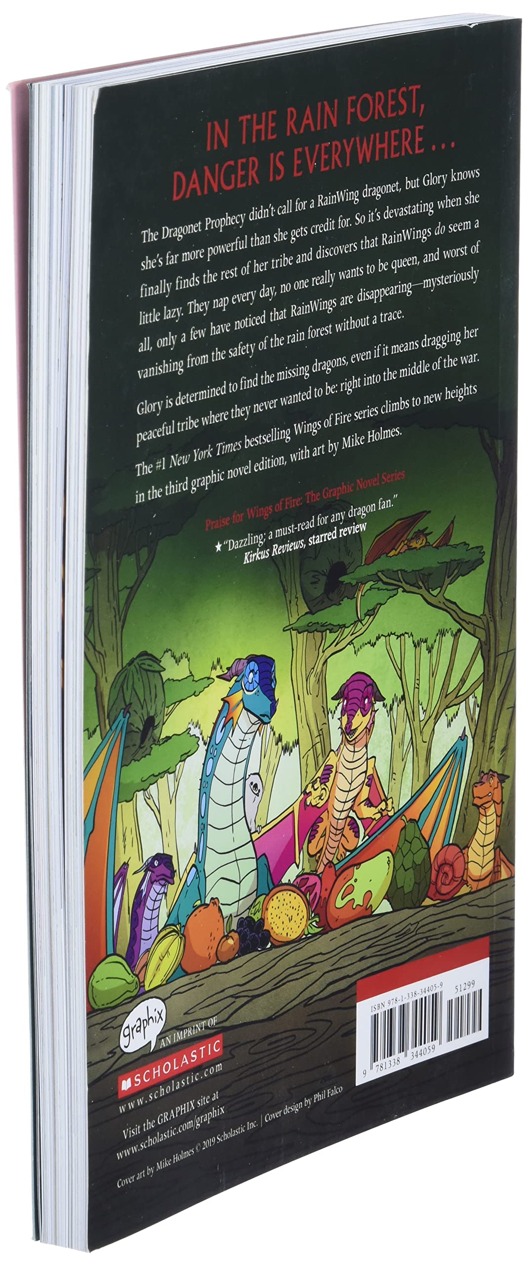 The #1 New York Times bestselling Wings of Fire series soars to new heights in the third graphic novel adaptation!Glory knows that the dragon world is wrong about her being "a lazy RainWing." Maybe she wasn't meant to be one of the dragonets of destiny, but Glory is sharp and her venom is deadly...even if that's still a secret.So when the dragonets seek shelter in the rain forest, Glory is devastated to find that the treetops are full of RainWings that nap all day and know nothing of the rest of Pyrrhia. Worst of all, they don't realize -- or care -- that RainWings are going missing from their beautiful forest. But Glory and the dragonets are determined to find the missing dragons, even if it drags the peaceful RainWing kingdom where they never wanted to be -- into the middle of the war. The #1 New York Times bestselling Wings of Fire series soars to new heights in this third graphic novel adaptation, with art by Mike Holmes.
