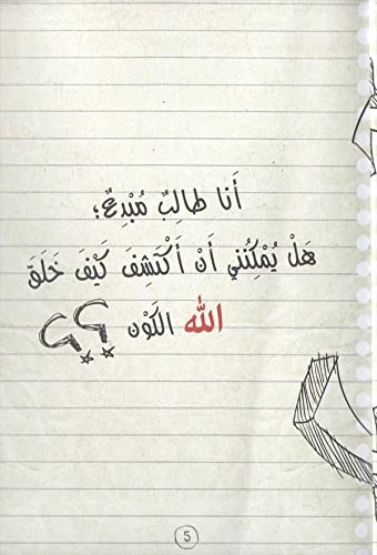 كُنْتُ قَدْ أَخْفَيْتُهُ جَيِّداً حتى لا يَطَّلِعَ عَلَيْهِ أَحَدٌ، ولكِنْ لا بَأَسَ!... فَقَدْ أَذِنْتُ لكَ أَنْ تَقْرَأَ مِنْهُ قَليلاً!... فَلا مانِعَ عِنْدي أَنْ تَعْرِفَ شَيْئاً عَنْ طُفولَتي المُبْدِعَة!...وَأَنا في الواقِعِ أَنْتَظِرُ بِشَوْقٍ لأَرى الحَيْرَةَ التي تَعْلو وَجْهَكَ وَأَنتَ تَقْرَأُ دَفْتَري!...ففي هذا الدَّفْتَرِ؛ تَجِدُ أَجْوِبَةَ أَسْئِلَةٍ كَثيرَةٍ صَعْبَةٍ عِشْتُها في طُفولتي، وكَتَبْتُها في دَفْتري الذي بَيْنَ يَدَيْك! لِماذا لا تَأْكُلُ الزُّهورُ شَطيرَة اللَّحمِ؟...وَالنُّجومُ في السَّماءِ هل صَنَعَها عَمِّي صالِح؟ مَن الذي خاطَ جُرْحَ أُصْبُعي عِنْدَما جُرِحَتْ؟... لأَنّي طالِبٌ ذّكِيٌّ مُبْدِعٌ؟... بَلْ هِيَ في الواقِعِ أَجْوِبَةُ جَدَّتي الرّائِعَة!...حَسَناً!... فَفي النِّهايَةِ أنا وَجَدَّتي وَدَفْتَري فَريقُ عَمَلٍ رائِعٌ!... وَفَهِمْتُ أخيراً كيف خلق الله تعالى الكون عِنْدما أنْظُرُ جَيِّداً بِعَيْنَيَّ الثّاقِبَتَّيْنِ!... وَأَنْتَ أَيْضاً تَمْلِكُ عَيْنَيْنِ حادَّتَّيِّ البَصَرِ تَنْظُرُ بِهِما جَيِّداً!... بِالطَّبْعِ لَنْ تَكونَ مِثّلي فلا تَتَحَمَّسْ كثيراً!..
