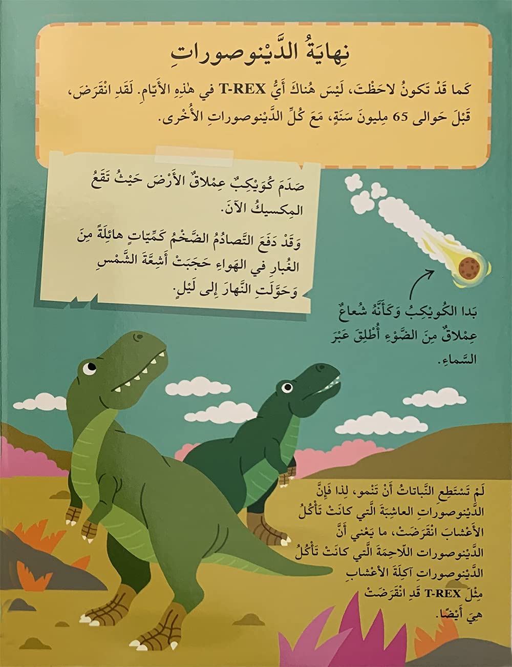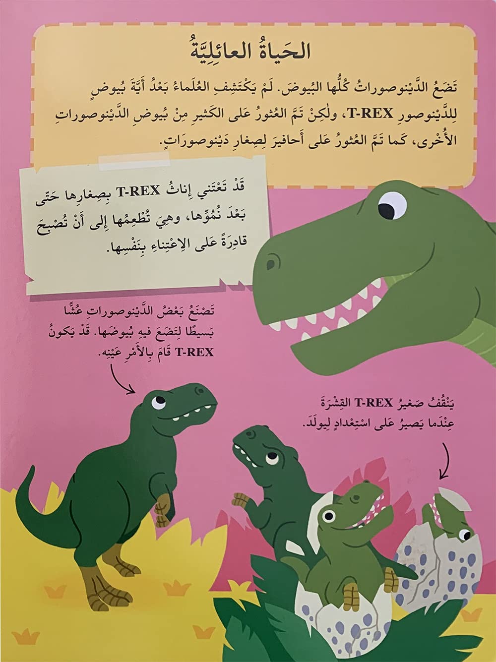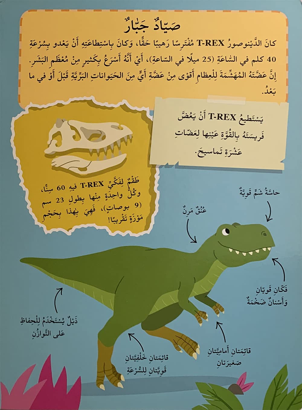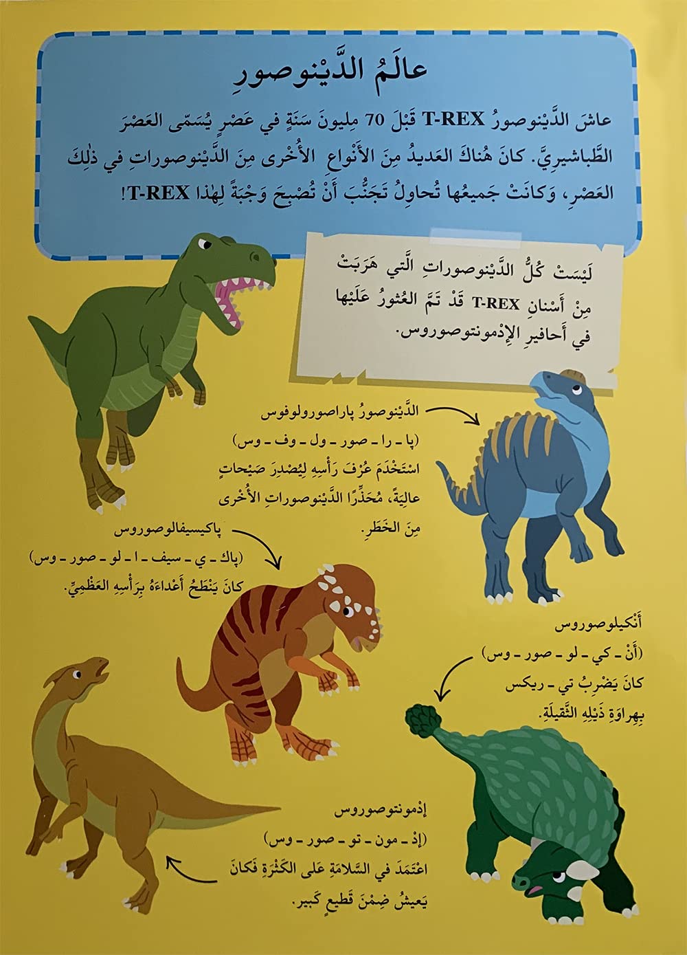 كتاب التيرانوصورهذا الكتاب الرائع يحتوي على كل شيء جديد يحتاج إليه محبو الدينوصورات للتعرف على تي-ريكس الضاري . بالإضافة إلى أنموذجٍ كبيرٍ لصنع تيرانوصور.