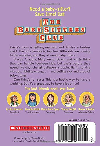 America's favorite series returns with a new look and a Netflix tv show. Kristy's mom is getting married, and everyone is coming to town to help, bringing their kids with them. Fourteen kids! Kristy is sure she and Stacey, Claudia, Mary Anne, and Dawn can handle it--they're professional baby-sitters, after all, and Kristy's mom has offered them a lot of money to take on such a big job.But will a week of changing diapers, stopping fights, solving mix-ups, and keeping fourteen children entertained prove to be too much for the BSC? Can they keep things under control for Kristy's big day?