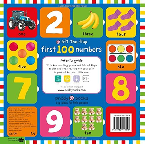 The perfect tool to help babies and toddlers learn their first numbers and develop early counting skills. Question prompts on every page encourage children to lift the sturdy, shaped flaps - over 50 in total - which reveal hidden pictures, numbers and things to count. The book focuses on developing sorting, matching and counting skills from one to ten, as well as introducing numbers up to 100 on the last pages.