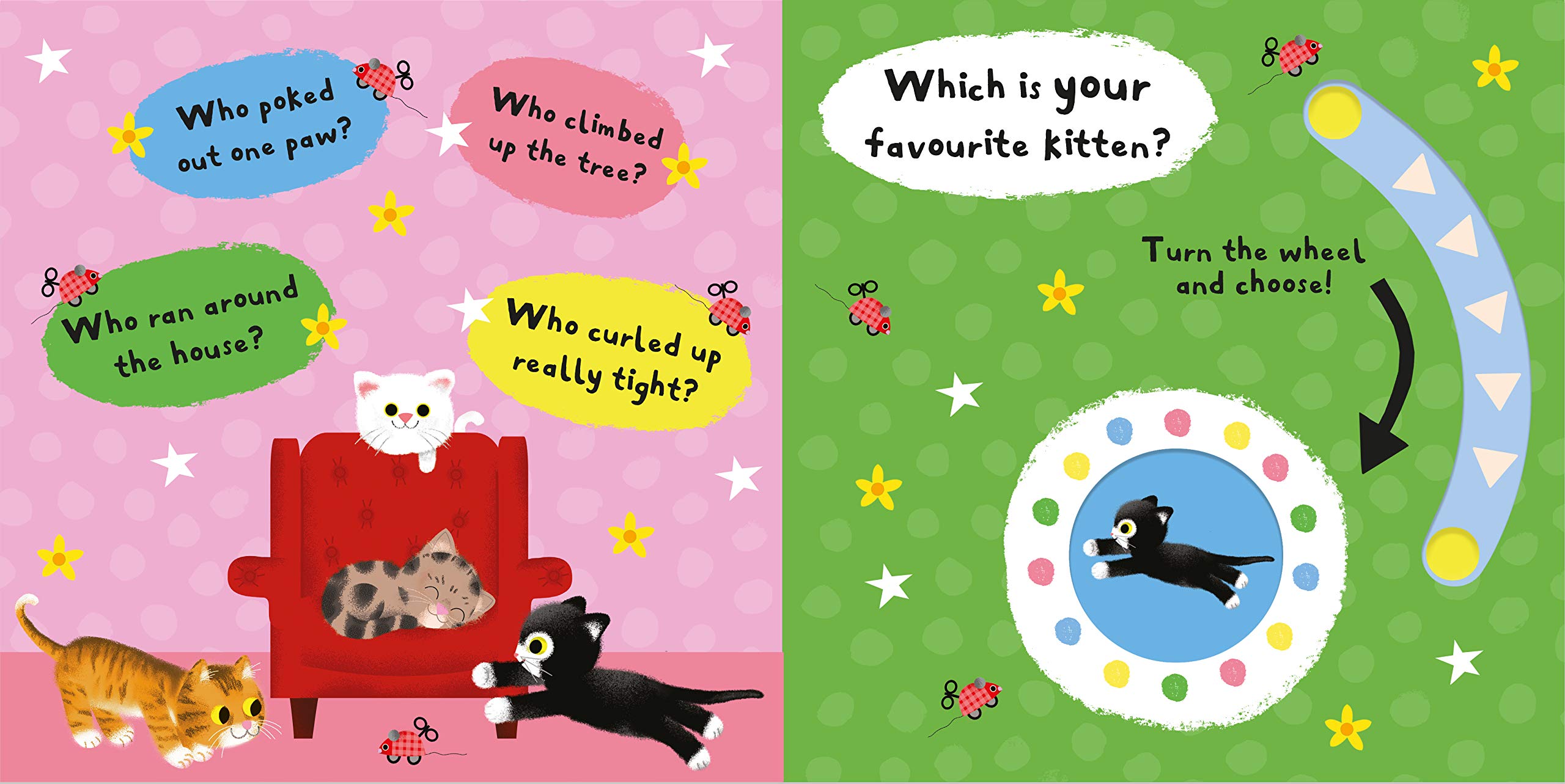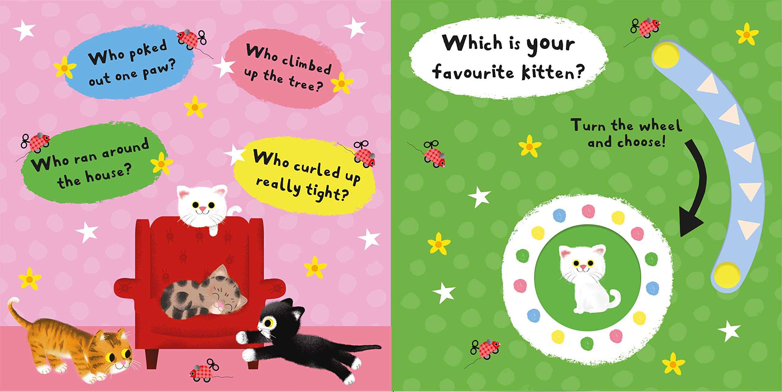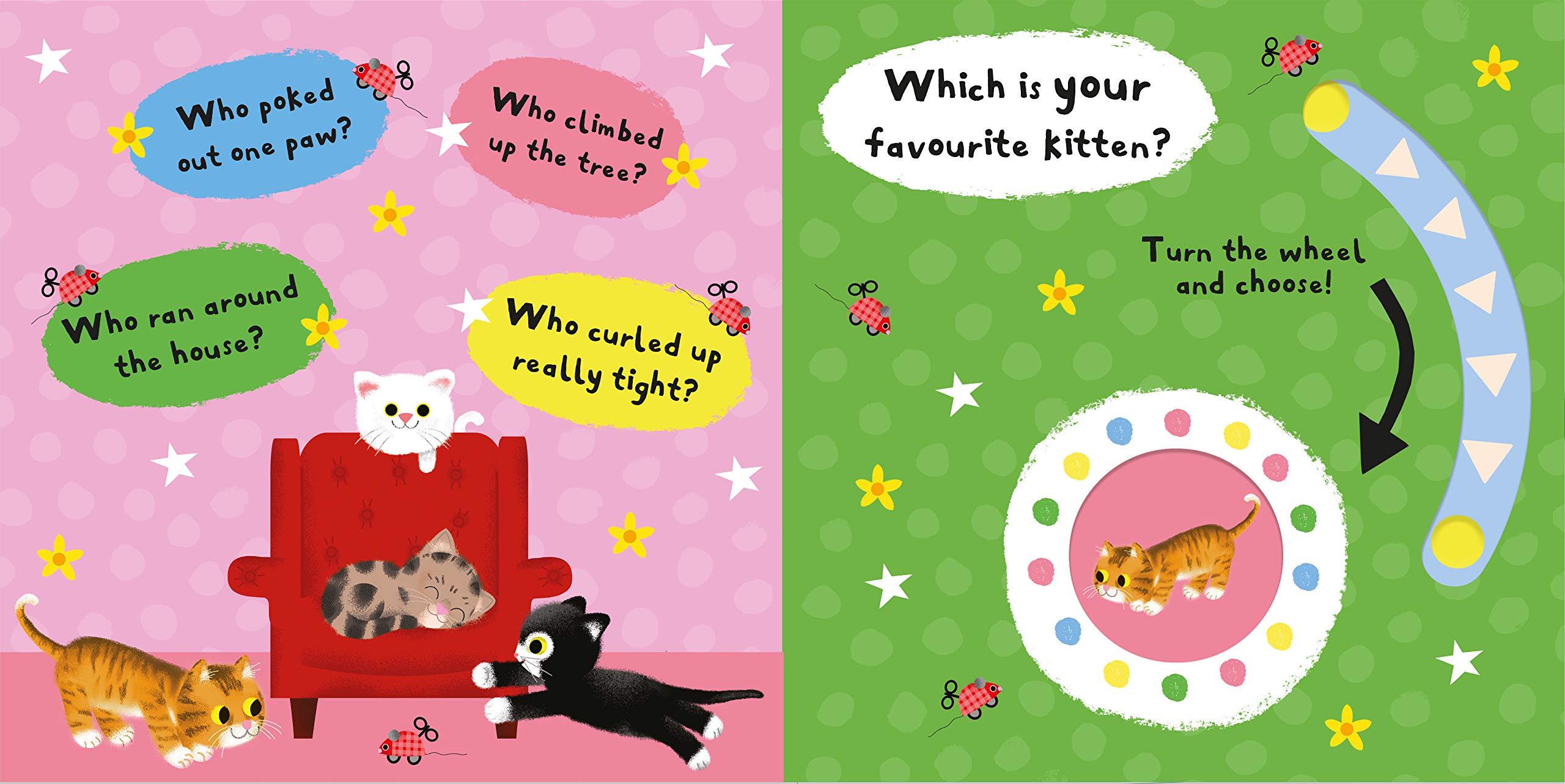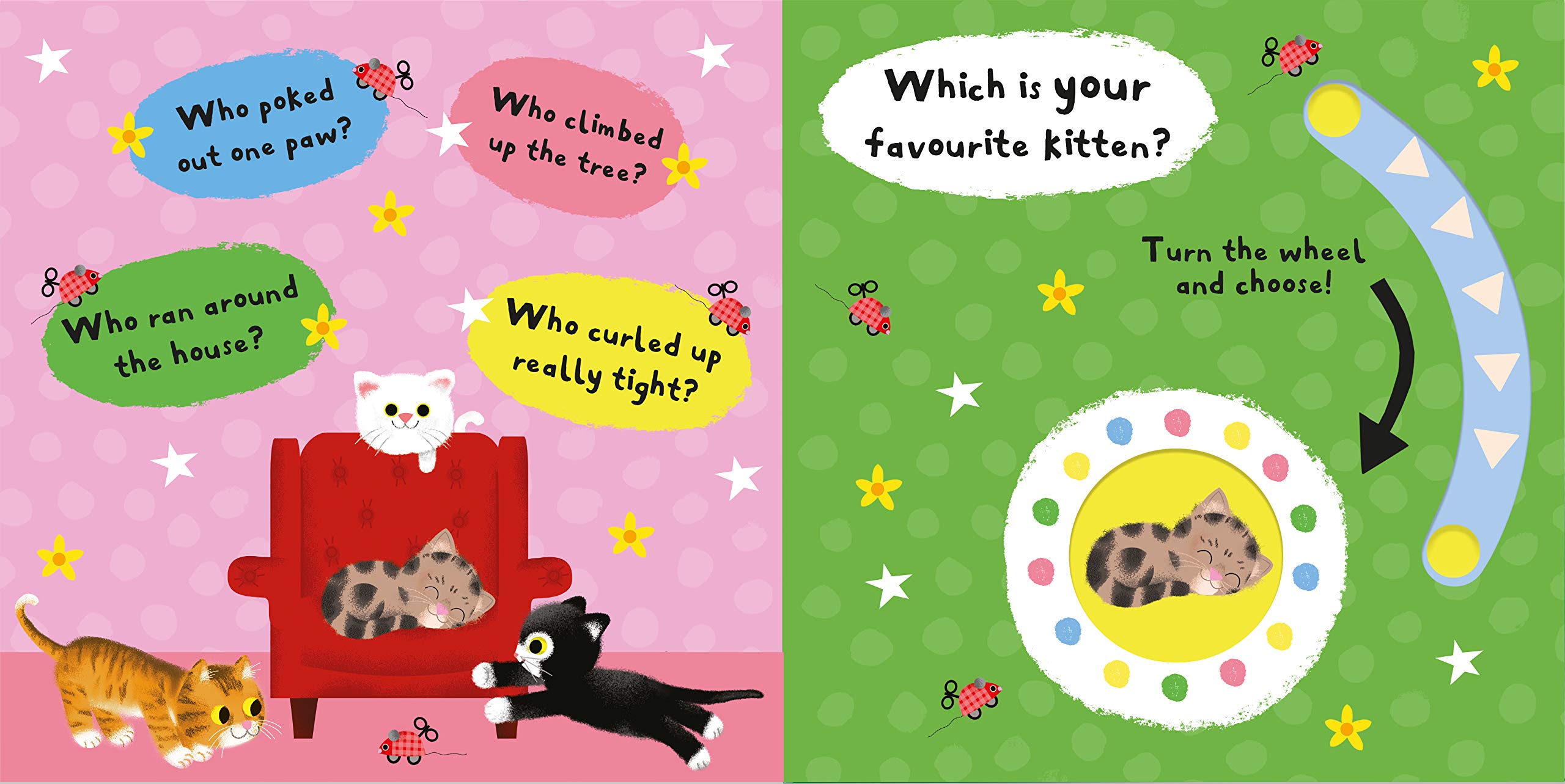 In My Favourite Kitten, older babies and toddlers can have lots of fun opening the peekaboo flaps with the easy-to-grab pull-down flaps and turning the wheel to choose their favourite character. From the cheeky kitten playing hide and seek to the sleepy kitten curled up for a nap, which kitten will your little one pick?With delightful question-and-answer rhyme and appealing illustrations from Daniel Roode, My Favourite Kitten is sure to focus and engage even the youngest of children.Also available in the My Favourite series: My Favourite Owl, My Favourite Puppy, My Favourite Monkey