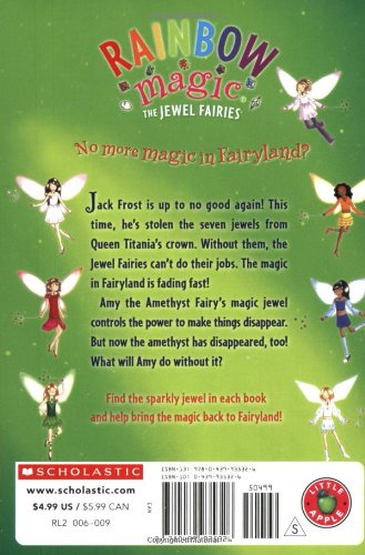 Seven jewels have been stolen from the Fairy Queen's crown! Without them, the Jewel Fairies' magical powers are fading. Read all seven books to find the jewels and save the fairies!Jack Frost is up to no good again! This time, he's stolen the seven jewels from Queen Titania's crown. Without them, the Jewel Fairies can't do their jobs. The magic in Fairyland is fading fast!Amy the Amethyst Fairy's magic jewel controls the power to make things disappear. But now the amethyst has disappeared, too! What will Amy do without it?Find the sparkly jewel in each book and help bring the magic back to Fairyland!