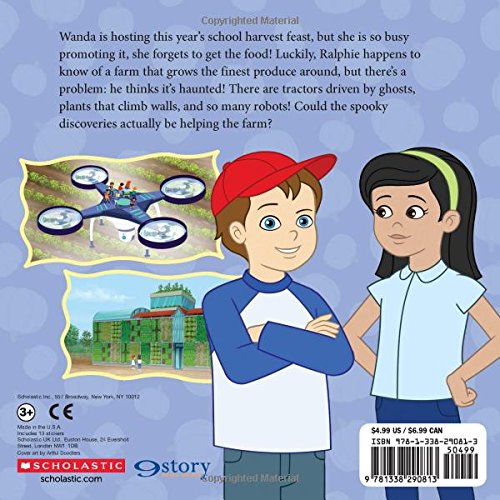Seatbelts, everyone! Ms. Frizzle's class learns all about the role technology plays on farming!Wanda proudly hosts this year's school harvest feast, but she was so busy promoting it she forget to get the food! Luckily, Ralphie happens to know of a farm that grows the finest produce around, but there's a problem: he thinks it's haunted! There are tractors driven by ghosts, plants that climb walls, and so many robots! Could the spooky discoveries actually be helping the farm?
