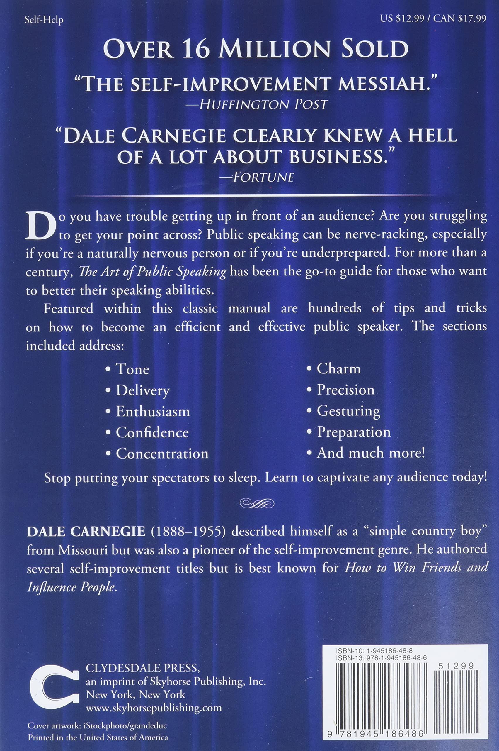 Originally published in 1915, Dale Carnegie’s The Art of Public Speaking has been the go-to guide for those who want to better their speaking abilities for more than a century.Do you have trouble getting up in front of an audience? Are you struggling to get your point across? Public speaking can be nerve-wracking, especially if you’re a naturally nervous person or if you’re underprepared.Featured within this classic manual are hundreds of tips and tricks on how to become an efficient and effective public speaker. The sections included address:ToneDeliveryEnthusiasmConfidenceConcentrationCharmPrecisionGesturingPreparationAnd much more!Stop putting your audience to sleep. Pick up your copy of The Art of Public Speaking and learn to captivate any audience today!