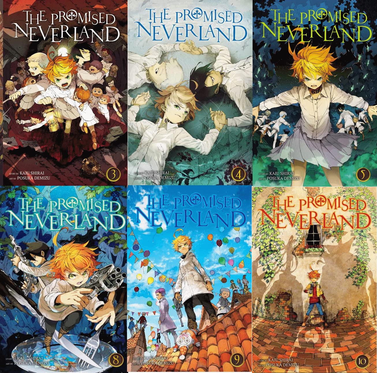 The children of the Grace Field House orphanage must escape a macabre fate before it's too late. Life at Grace Field House is good for Emma and her fellow orphans. While the daily studying and exams they have to take are tough, their loving caretaker provides them with delicious food and plenty of playtime. But perhaps not everything is as it seems... Behind the facade of a happy orphanage, the children of Grace Field House are secretly being raised as food for demons! Determined to save themselves and the other kids, Emma, Norman and Ray begin planning an escape. But their caretaker, "Mom," has brought in extra help to keep the orphans in line... 9781421597126The Promised Neverland, Vol. 1 9781421597133The Promised Neverland, Vol. 2 9781421597140The Promised Neverland, Vol. 3 9781421597157The Promised Neverland, Vol. 4 9781421597164The Promised Neverland, Vol. 5 9781974701476The Promised Neverland, Vol. 6 9781974702244The Promised Neverland, Vol. 7 9781974702299The Promised Neverland, Vol. 8 9781974704873The Promised Neverland, Vol. 9 9781974704989The Promised Neverland, Vol. 10 9781974708383The Promised Neverland, Vol. 11 9781974708888The Promised Neverland, Vol. 12 9781974708895The Promised Neverland, Vol. 13 9781974710164The Promised Neverland, Vol. 14 9781974714995The Promised Neverland, Vol. 15 9781974717019The Promised Neverland, Vol. 16 9781974718146The Promised Neverland, Vol. 17 9781974719785The Promised Neverland, Vol. 18 9781974721832The Promised Neverland, Vol. 19 9781974721863The Promised Neverland, Vol. 20