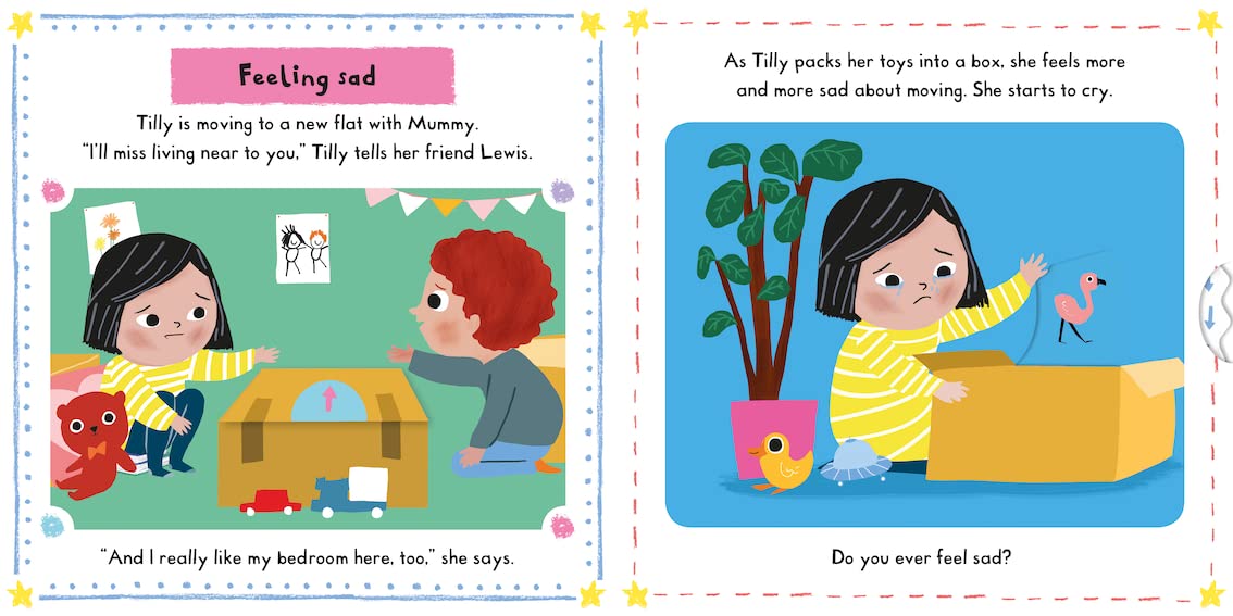 I have other books in the series and really like them, but more importantly- the little one (3yr) engages with those. However, this is based on a little child moving to a new flat and all the feelings that go with it. My little one cannot relate to moving house as a way to talk about other things that make him sad. Therefore, while it may work for older children who can translate the move to what they are going through, it unfortunately does not get my little one to even engage much less chat about what makes him sad. Maybe would take some time to get through with this one but for us this is a miss.