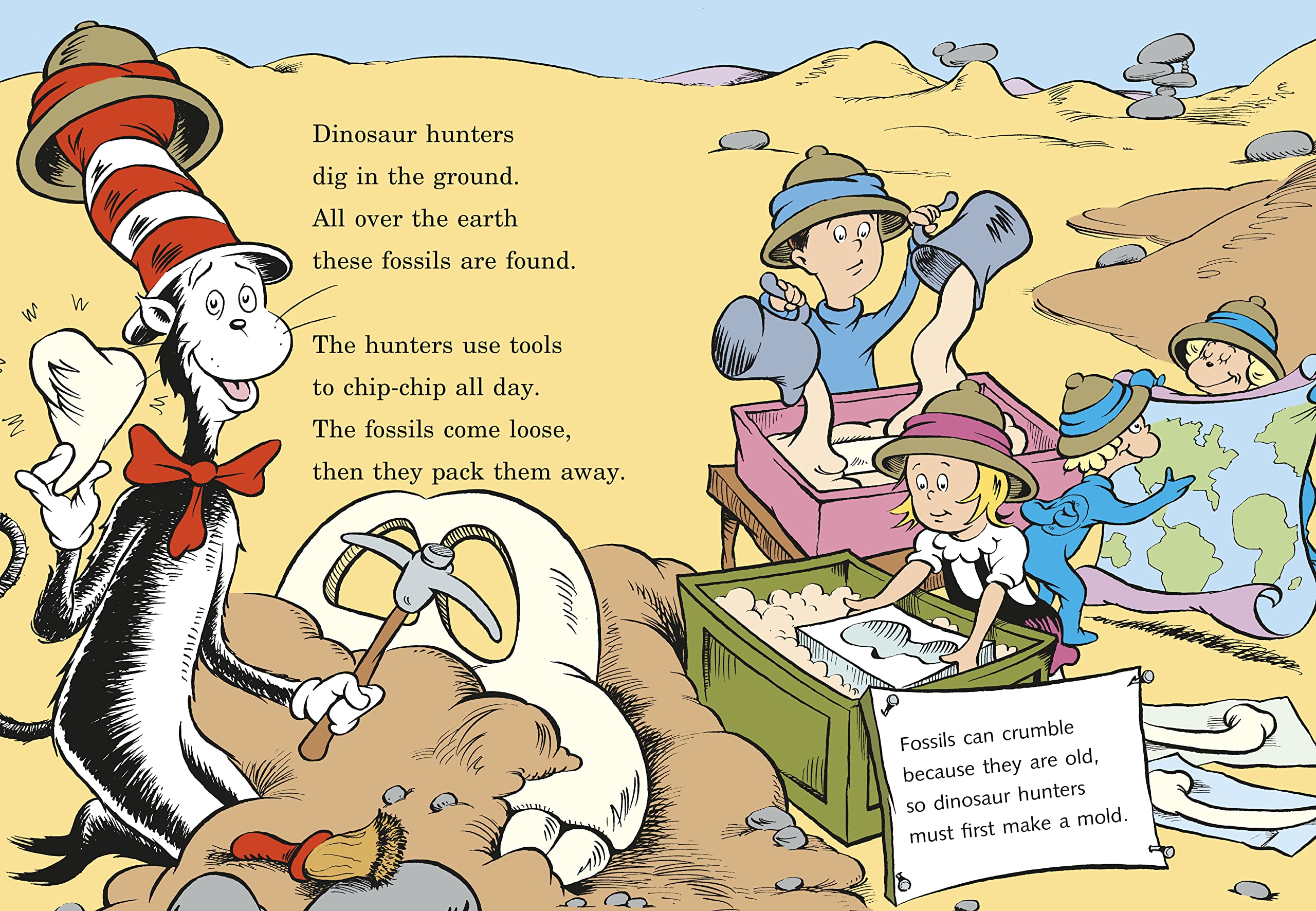 Journey through the fascinating world of dinosaurs with everyone's favorite Cat in the Hat in this positively prehistoric adventure! The Cat in the Hat's Learning Library is a nonfiction picture book series that introduces beginning readers ages 5-8 to important basic concepts. Learn about how fossils are formed and found, and get an easy introduction to dinosaurs from the flying Archaeoptyerx to the spiky Ankylosaurus. (And not to fear–the Cat in the Hat will break the names down for easy pronunciation for kids and parents.) Perfect for readers who are crazy about dinosaurs (or even just dino-nuggets) and for any kid who loves learning and science. Featuring beloved characters from Dr. Seuss's The Cat in the Hat, the Learning Library are unjacketed hardcover picture books that explore a range of nonfiction topics about the world we live in and include an index, glossary, and suggestions for further reading.