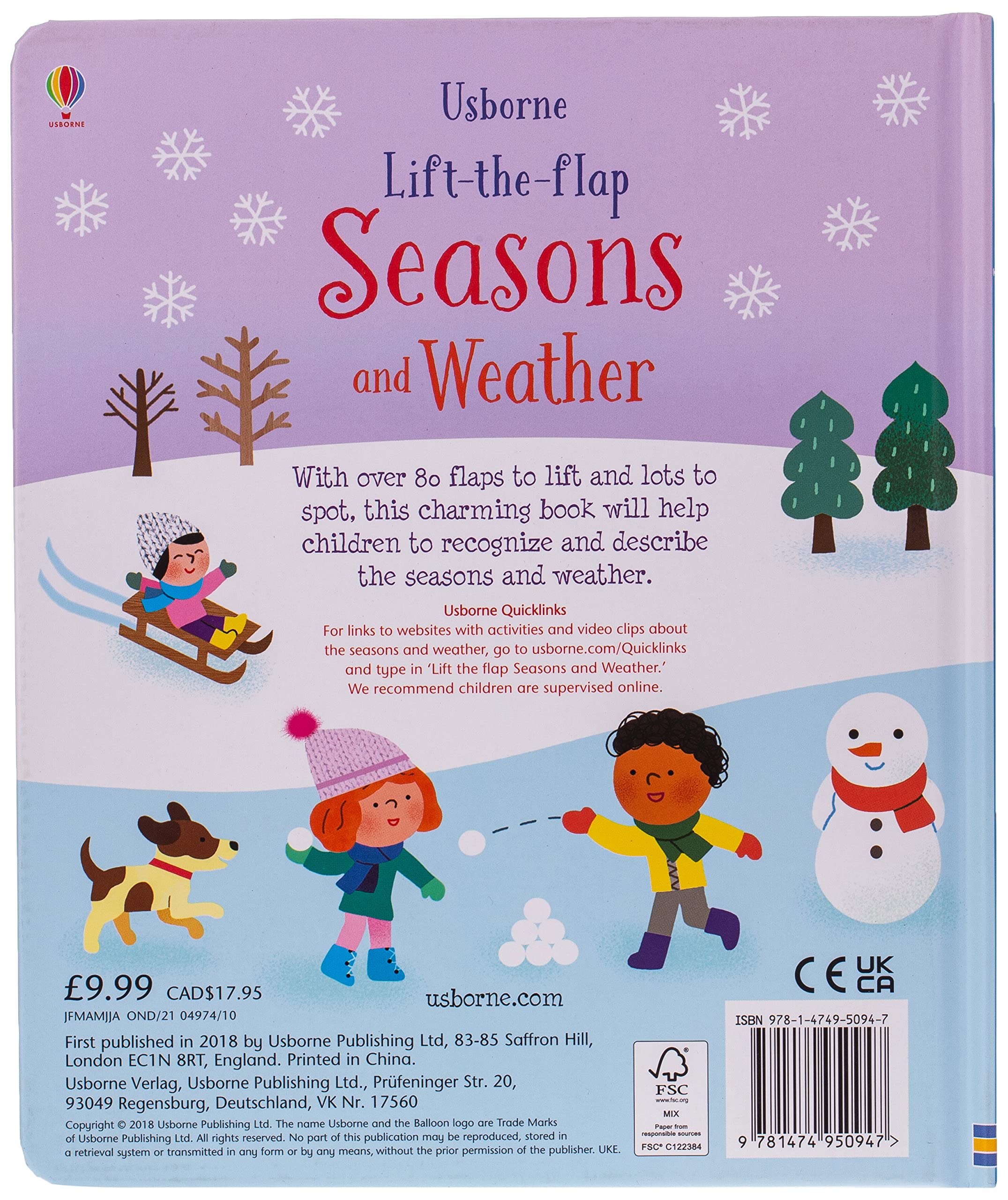 This charming book will help children recognize and talk about the seasons and weather. There are spring, summer, autumn and winter scenes with lots to spot and over 80 flaps to lift, plus pages on seasonal changes and what to wear when it's sunny, rainy or snowing. A delightful book to share and to help develop language skills.
