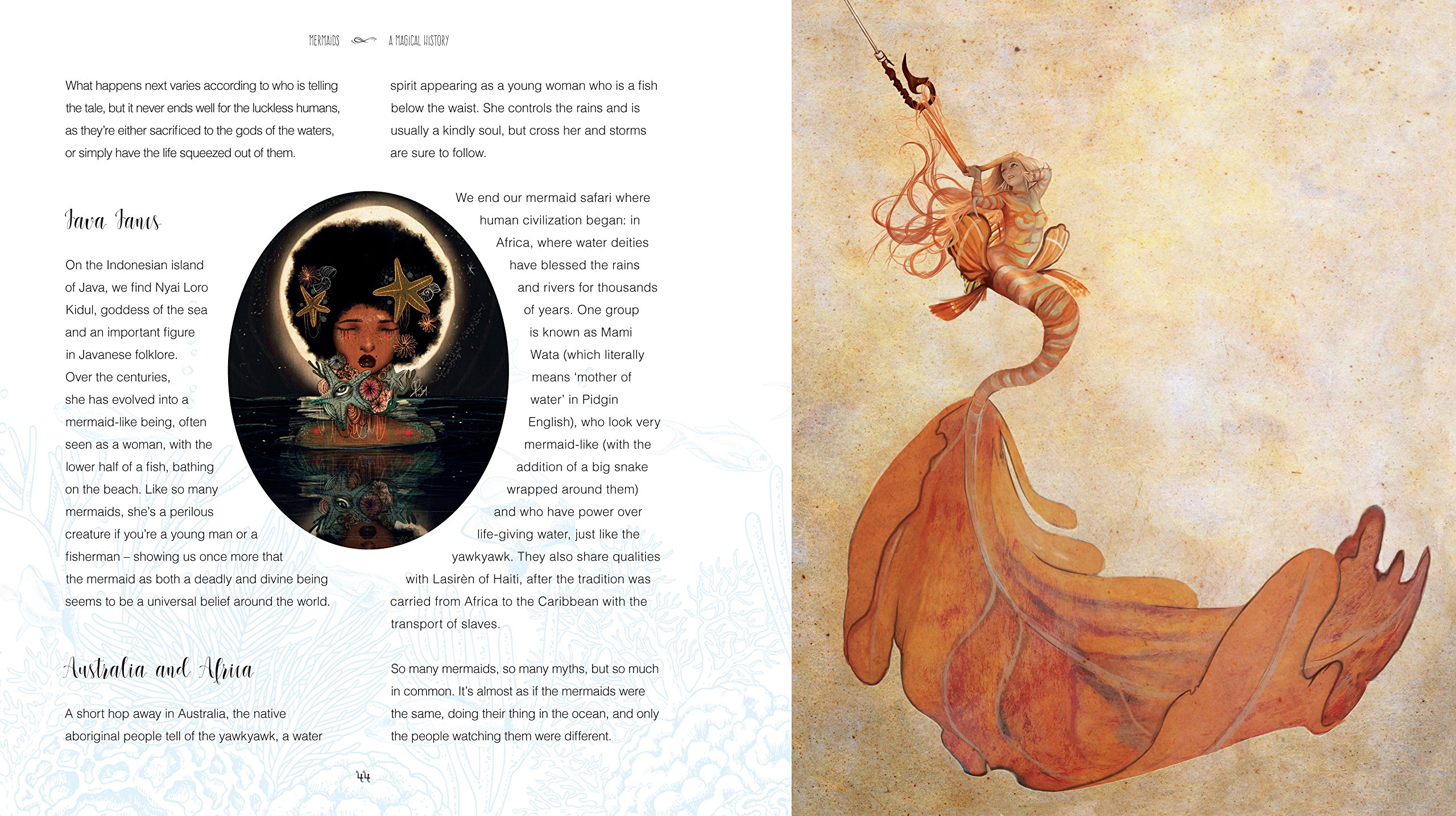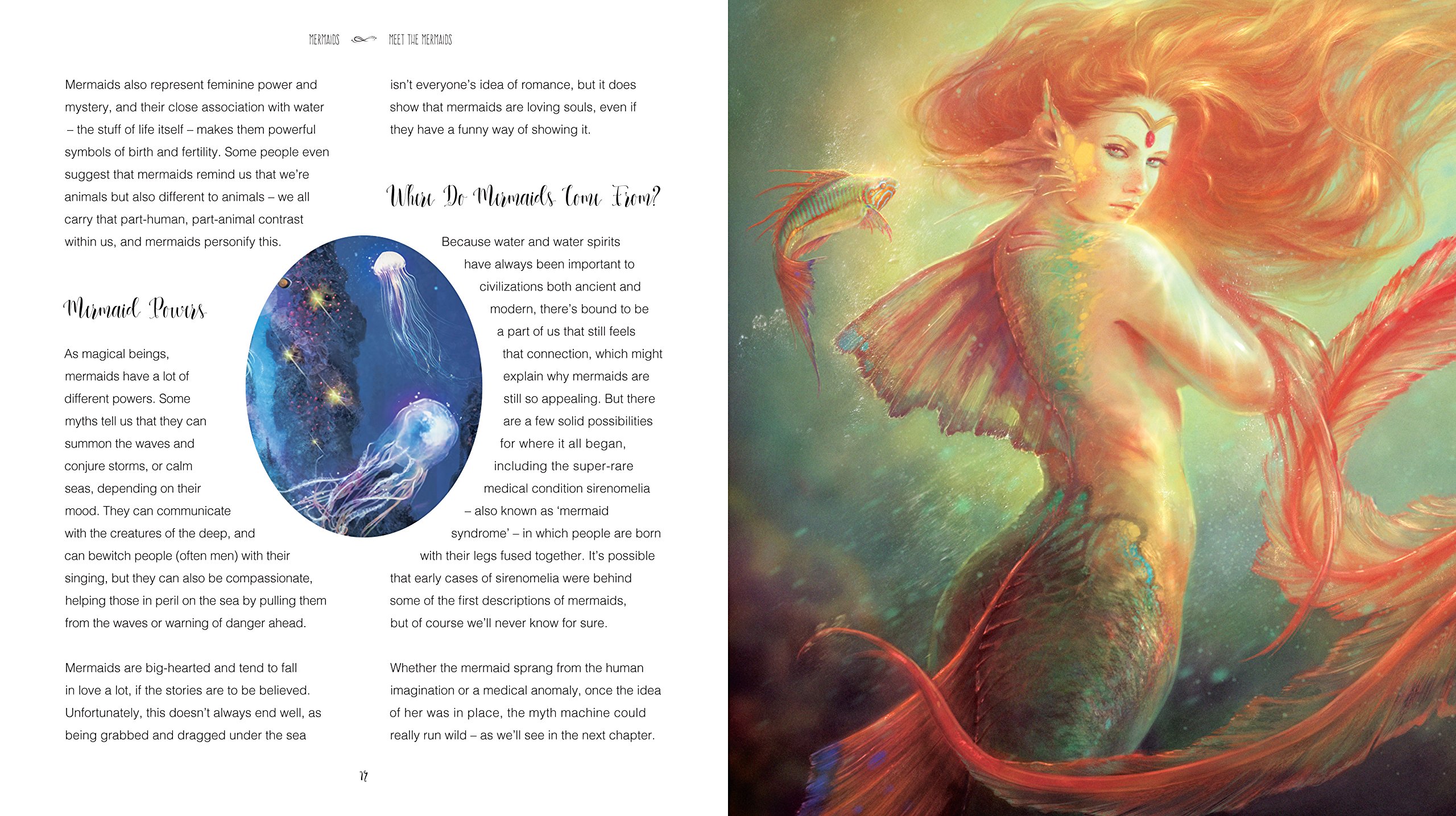 A popular phenomenon in the modern era, sightings of mermaids have been recorded throughout ancient history, appearing in times of trouble and disaster. These elusive creatures exist powerfully in imaginative literature and have become a source of inspiration for artists throughout the world. This delightful history is illustrated primarily by stunning fantasy work from contemporary artists.
